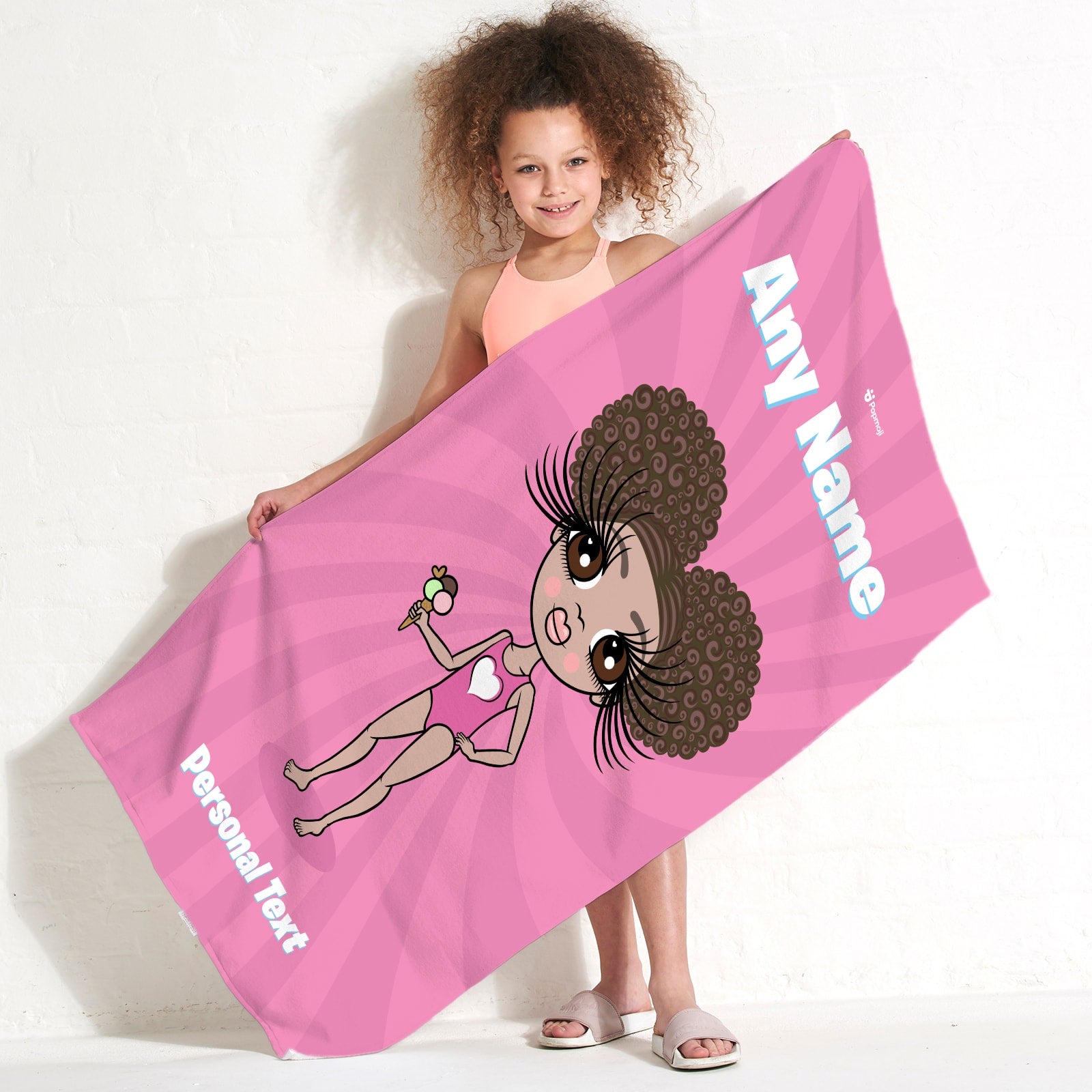 Look pretty and pink by the beach with your very own personalised ClaireaBella Girls Beach Towel, featuring YOU at the centre of this cute pink design.