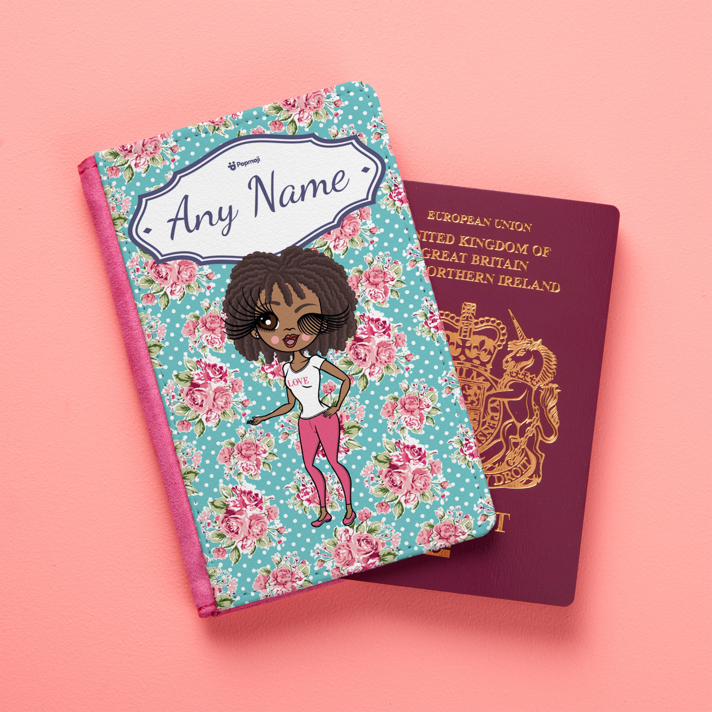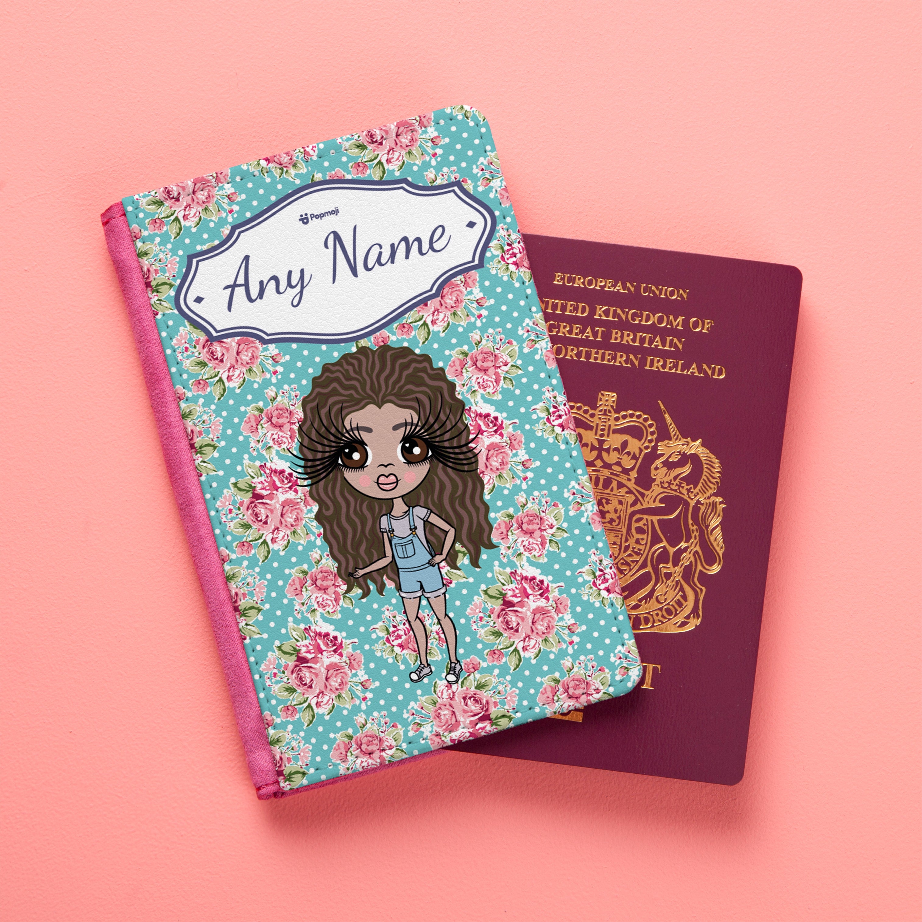 This wonderful personalised ClaireaBella Girls passport cover with a gorgeous rose patterned background.