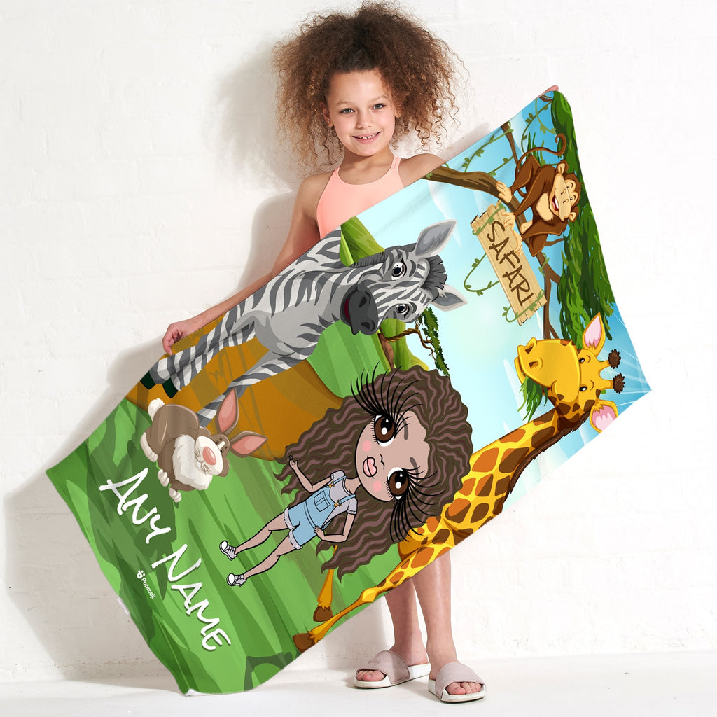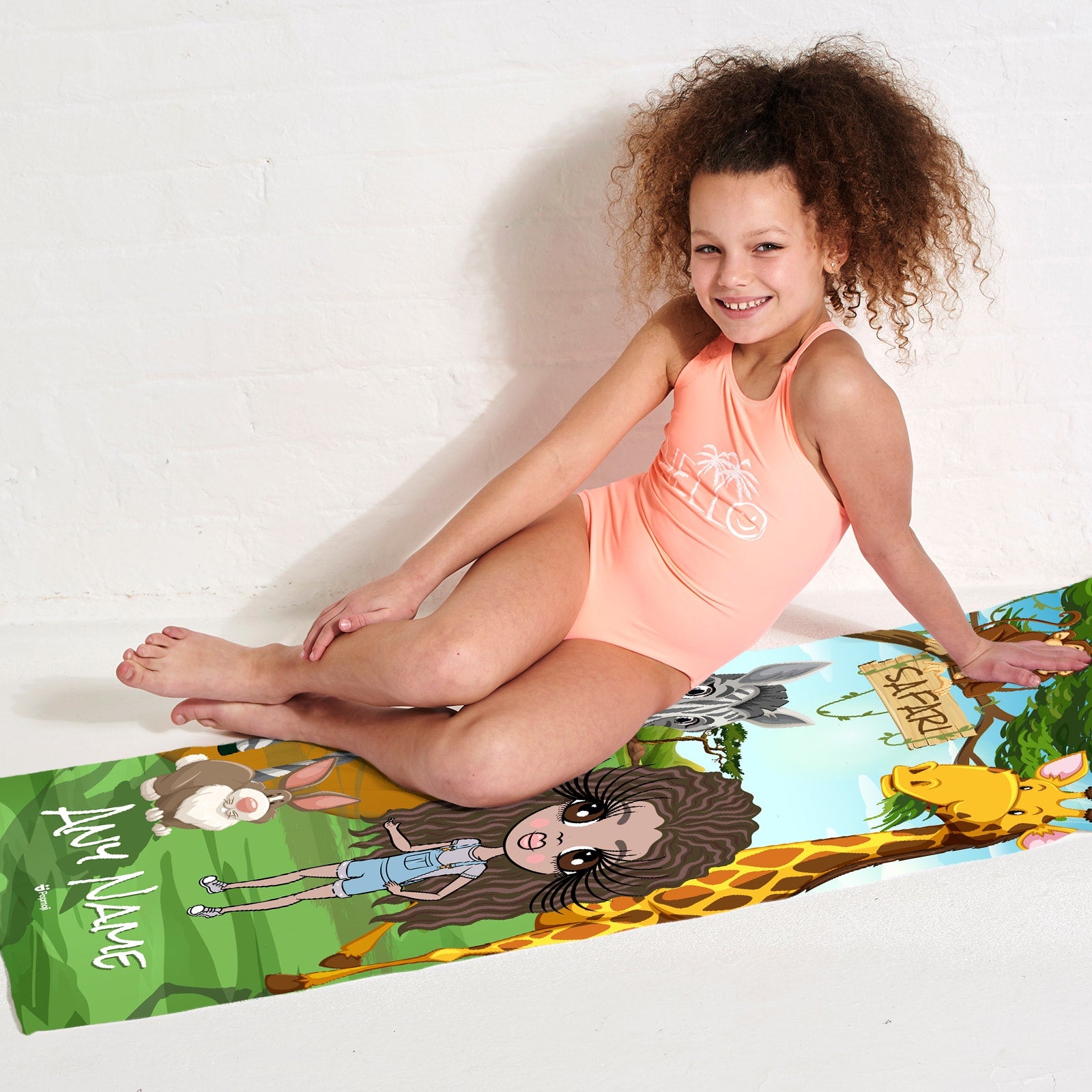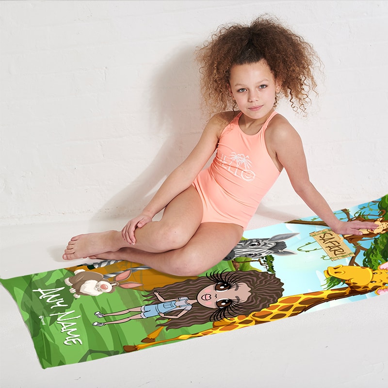 Bring the safari to the beach with you - with your very own Personalised ClaireaBella Girls Beach Towel, with YOU at the centre of this gorgeous safari zoo design.
