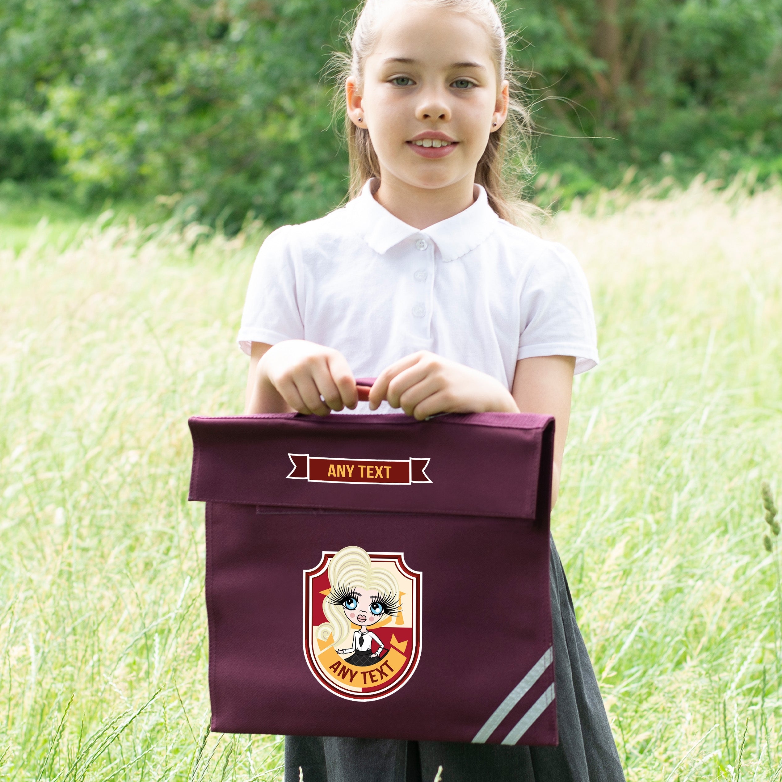 ClaireaBella Girls School Emblem Burgundy Book Bag