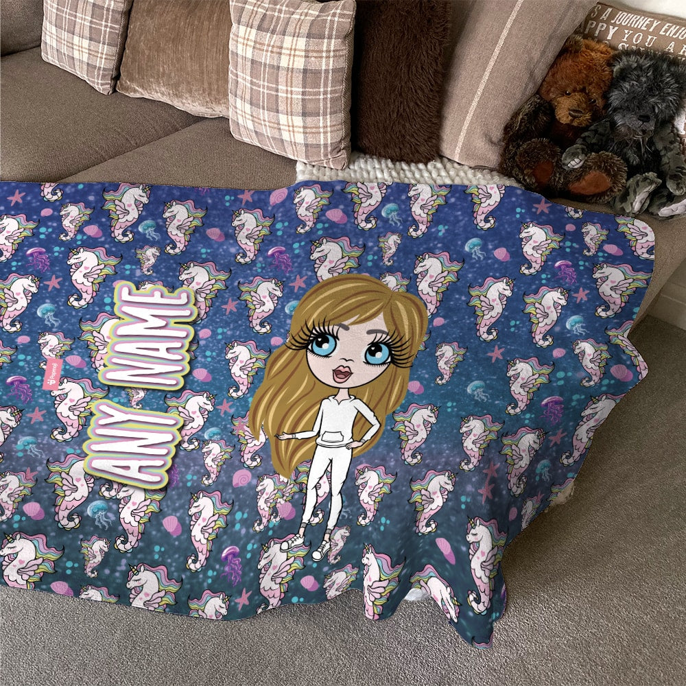 ClaireaBella Girls Seahorses Fleece Blanket