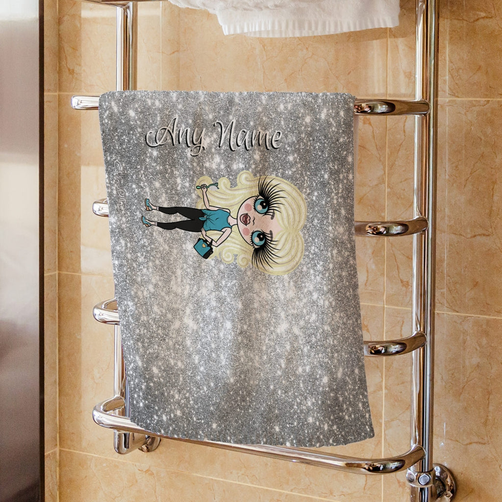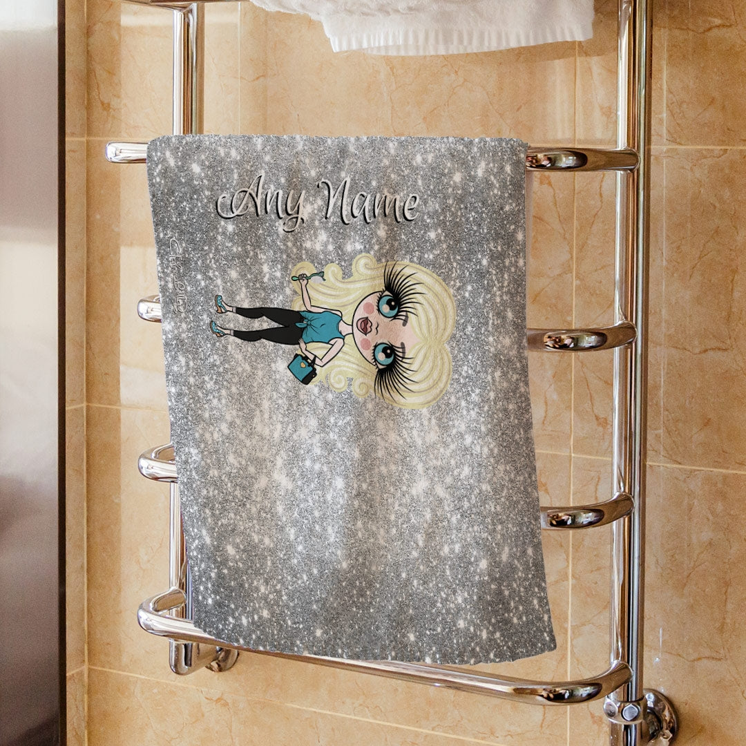 ClaireaBella Girls Silver Glitter Effect Hand Towel
