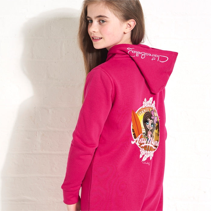 Surfs up! Be snug as a bug in this cosy onesie featuring a tropical inspired surf design. Starring their personalised character its relaxed fit gives plenty of room for moving and snuggling up. Plus each onesie is made with a zip fastening to make getting dressed easy.
