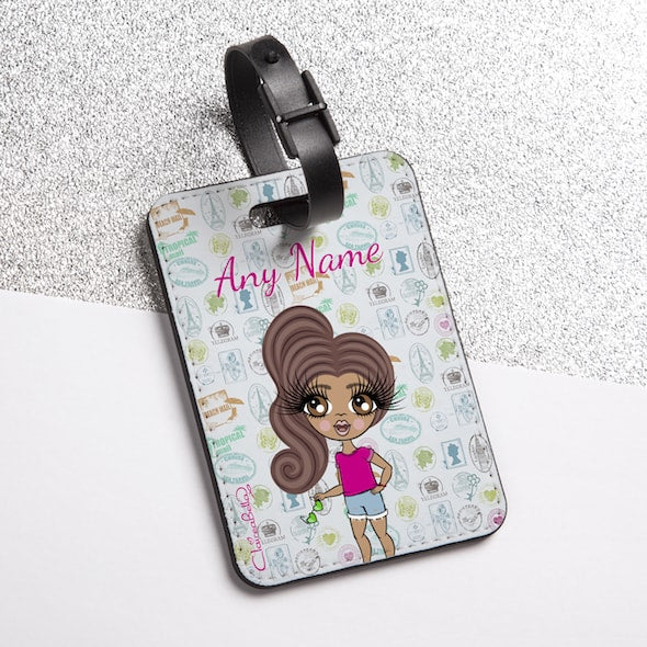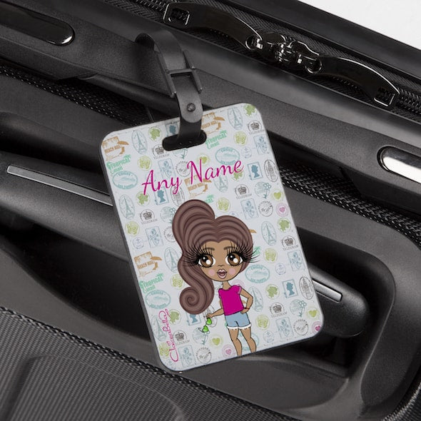 Create your ClaireaBella girls character to appear on a stunning Travel Stamp design luggage tag!