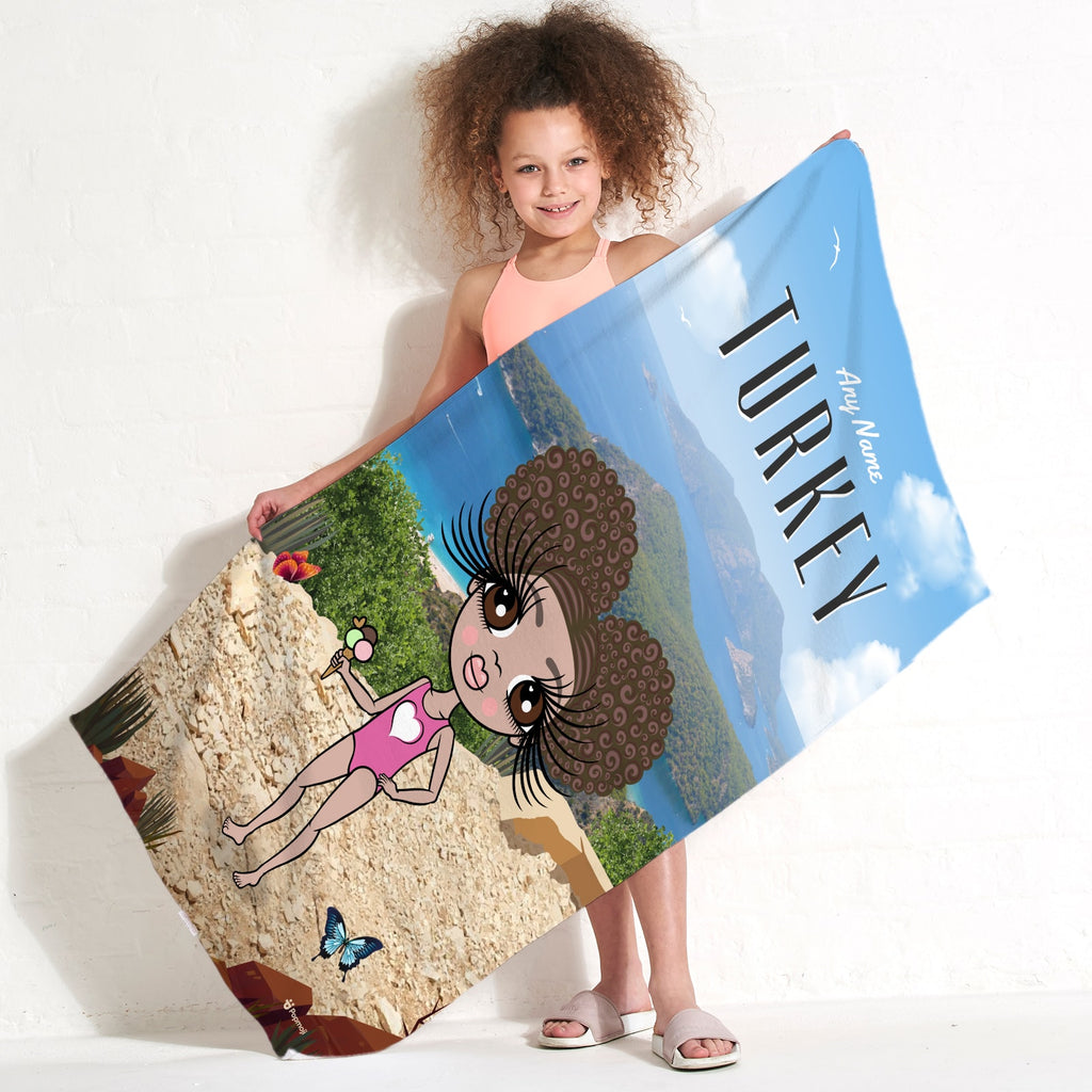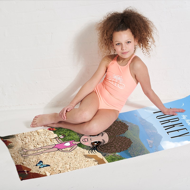 Time to head to the beach or pool with their very own Personalised ClaireaBella Girls Beach Towel, with your created character at the centre of this sweet design.