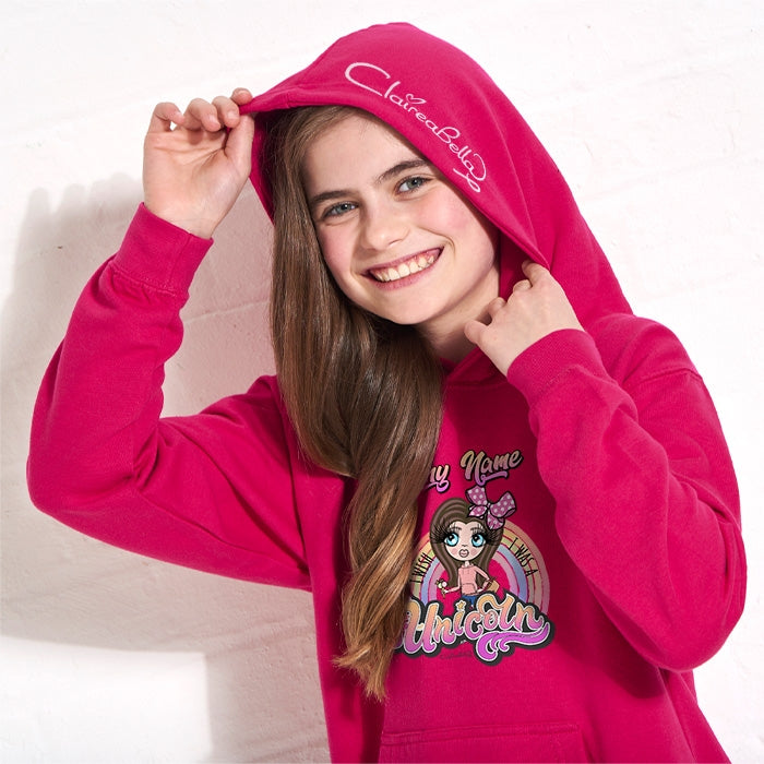 This gorgeous ClaireaBella Girls hoodie is the ultimate on trend fashion, to make your little fashionista stand out from the crowd, featuring a cute unicorn rainbow design with the quote 'I wish I was a unicorn'