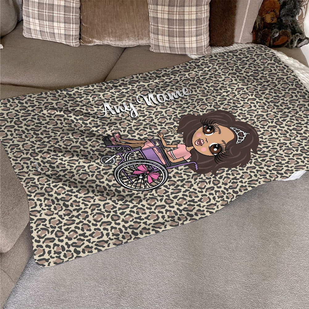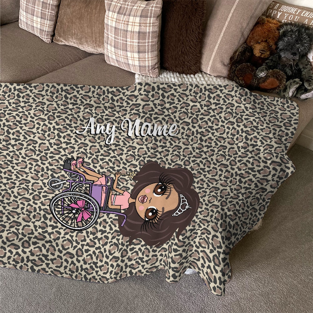 ClaireaBella Girls Wheelchair Portrait Leopard Print Fleece Blanket