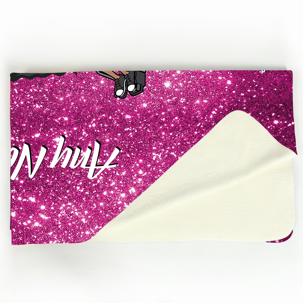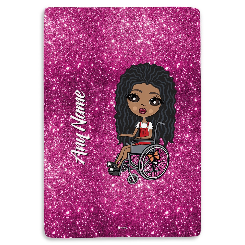 ClaireaBella Girls Wheelchair Portrait Pink Glitter Effect Fleece Blanket