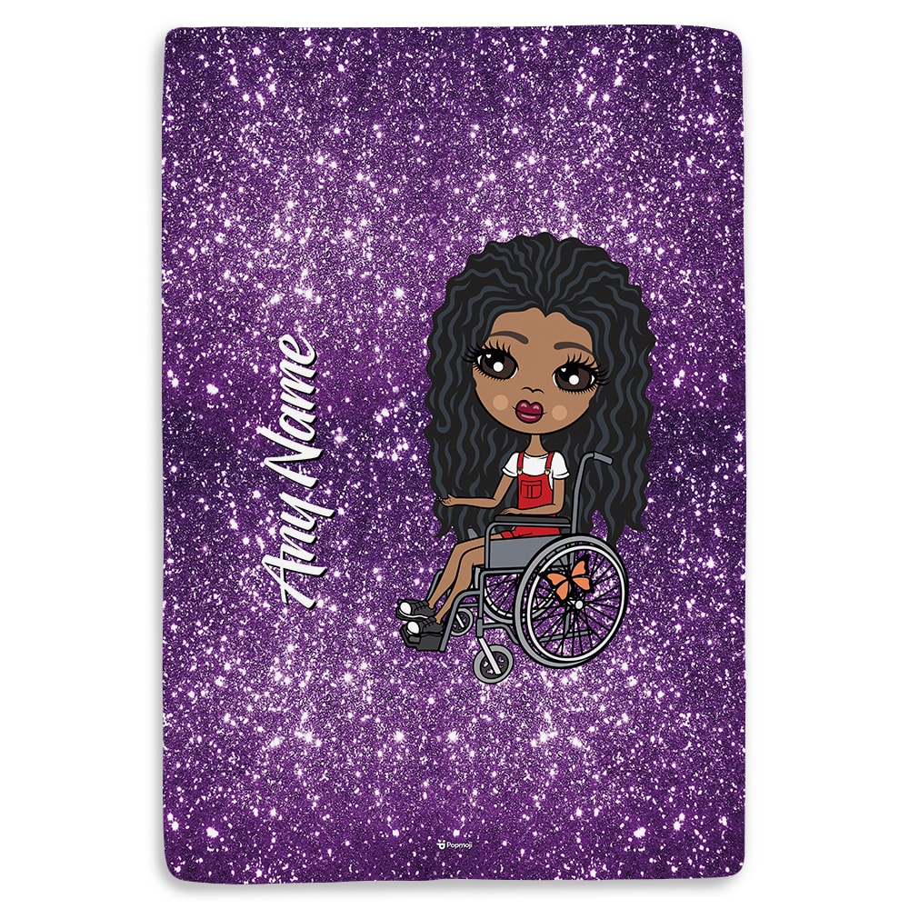 ClaireaBella Girls Wheelchair Portrait Purple Glitter Effect Fleece Blanket