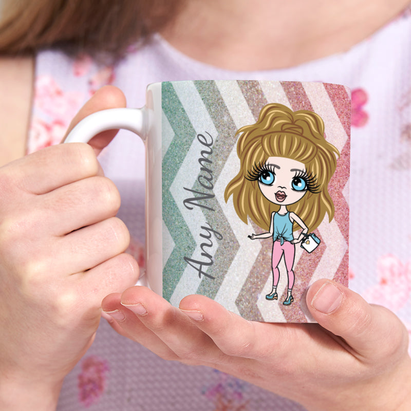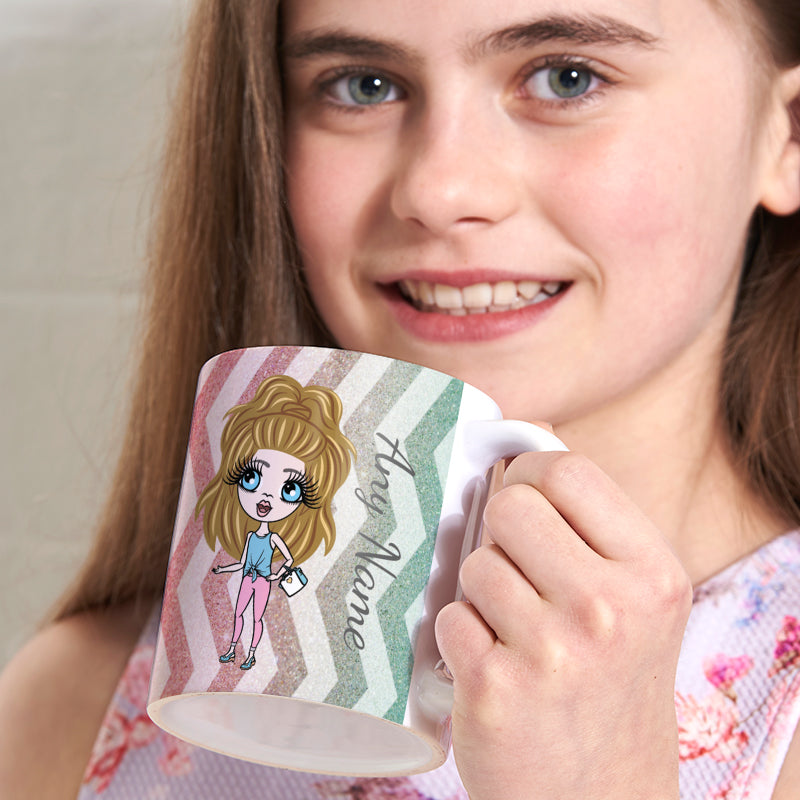 This beautiful mug features a colourful glitter effect design with zig zag stripes running through, this fabulous personalised ClaireaBella girls mug - perfect for girls of all ages.