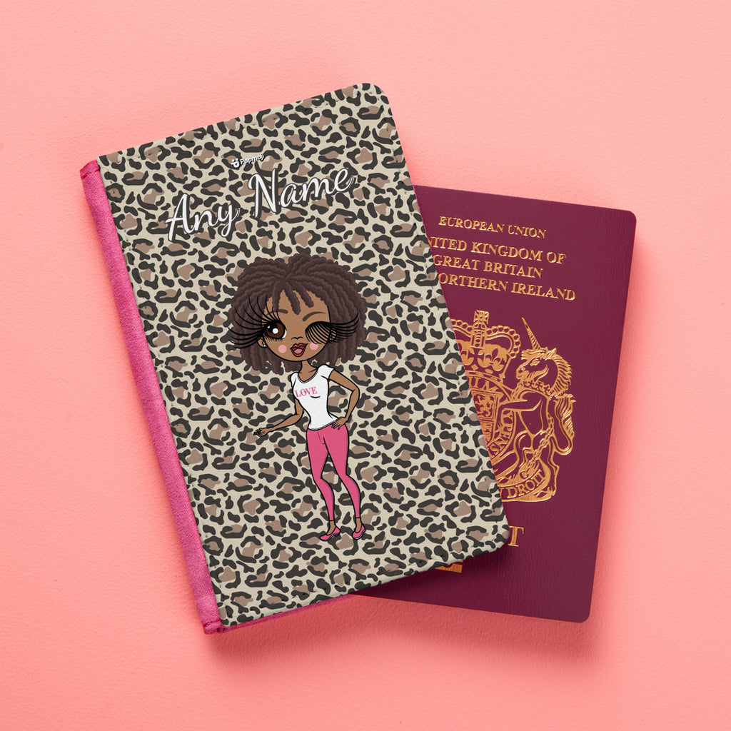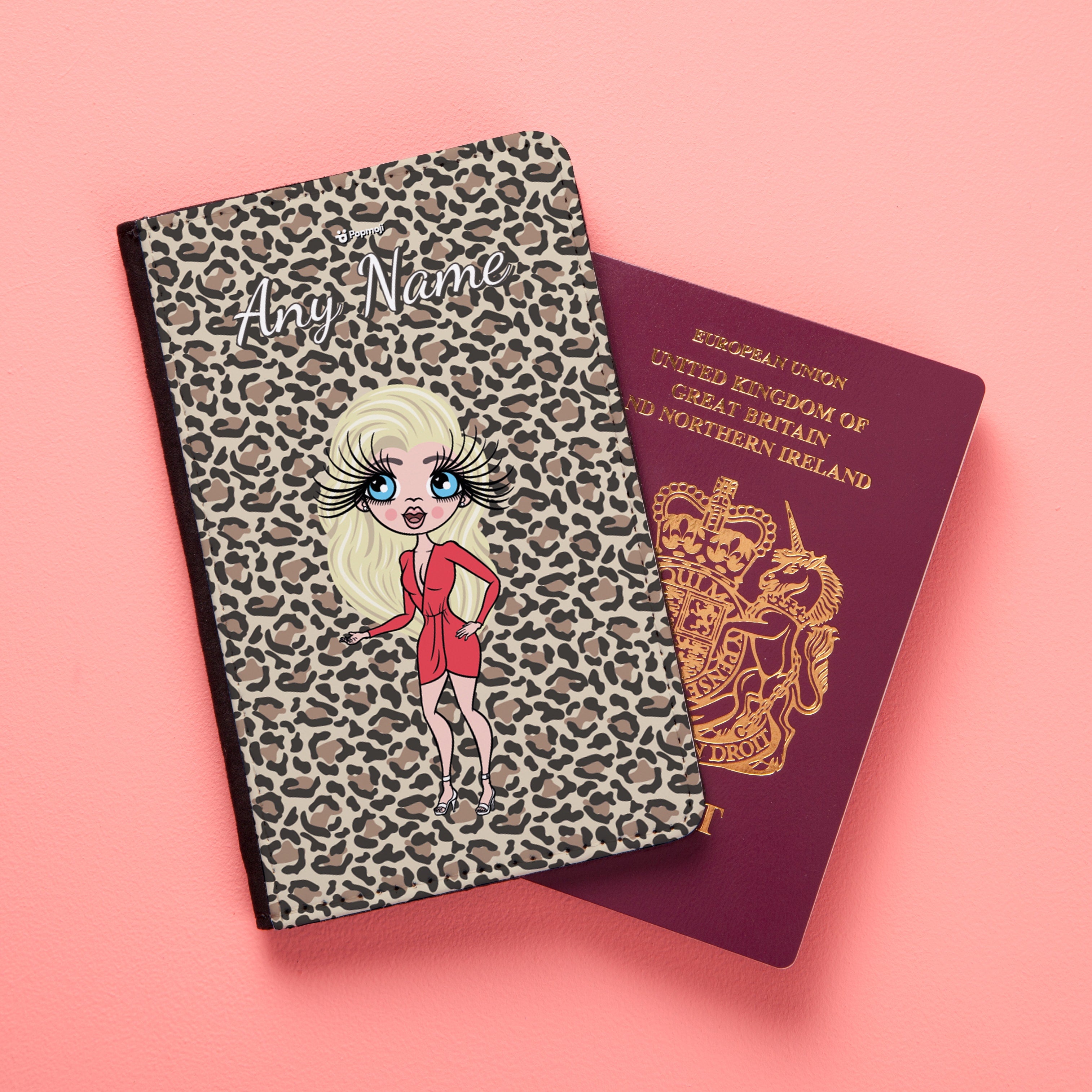 Travel in trendsetting style with this sexy new ClaireaBella Leopard Print passport cover. This stylish passport cover features your created ClaireaBella Character and name with a stylish leopard print background.