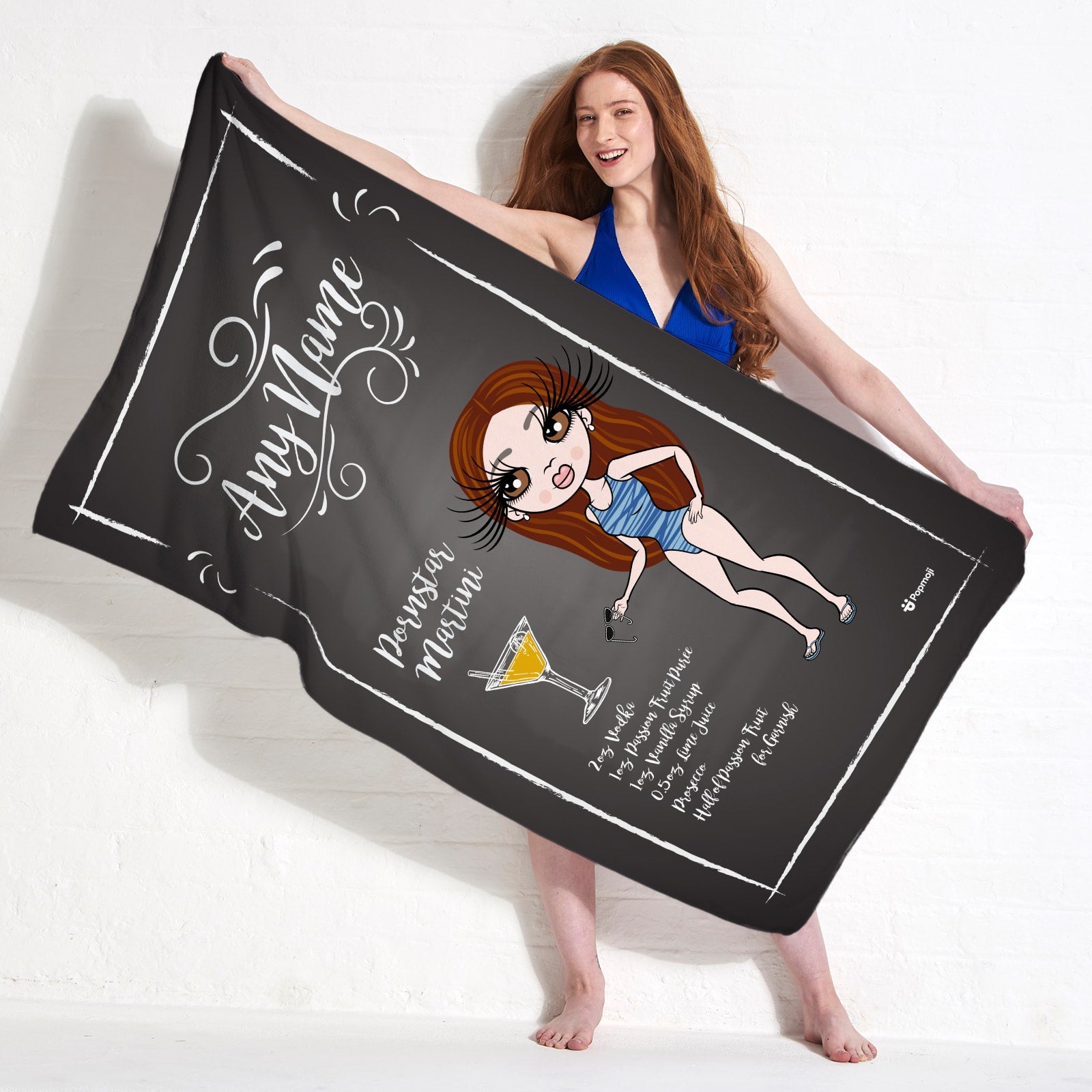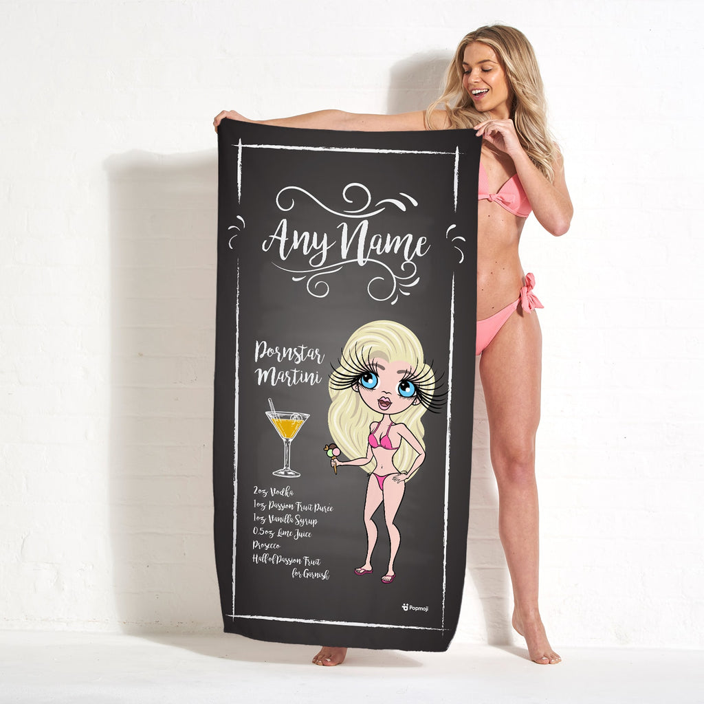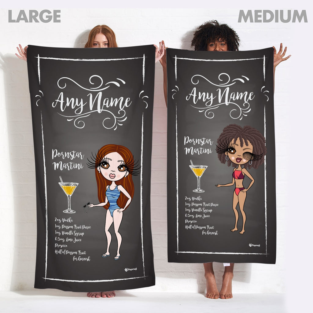 Let's shake it up this summer! with the new ClaireaBella Beach Towel featuring your character at the centre of a tasty pornstar martini recipe design!
