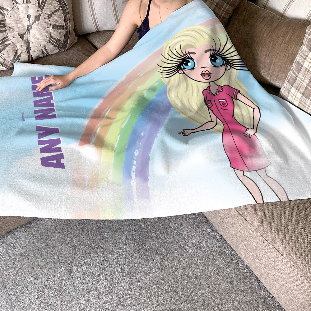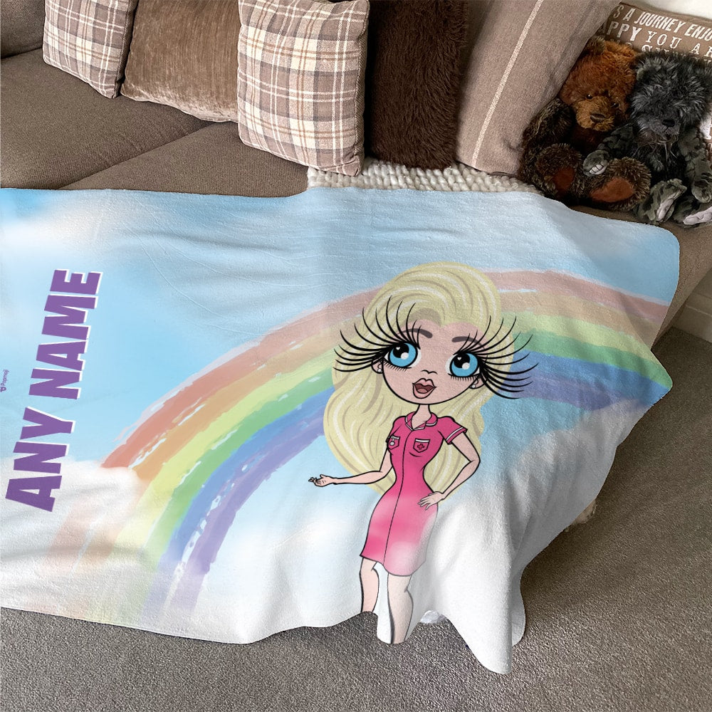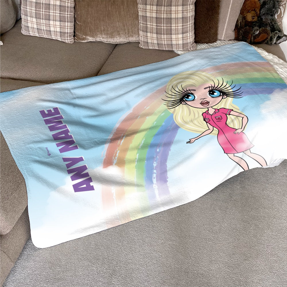 Wrap yourself up in colourful rainbow positivity with the fully personalised ClaireaBella Rainbow Fleece Blanket featuring YOU at the centre of this magical and wonderful rainbow design.