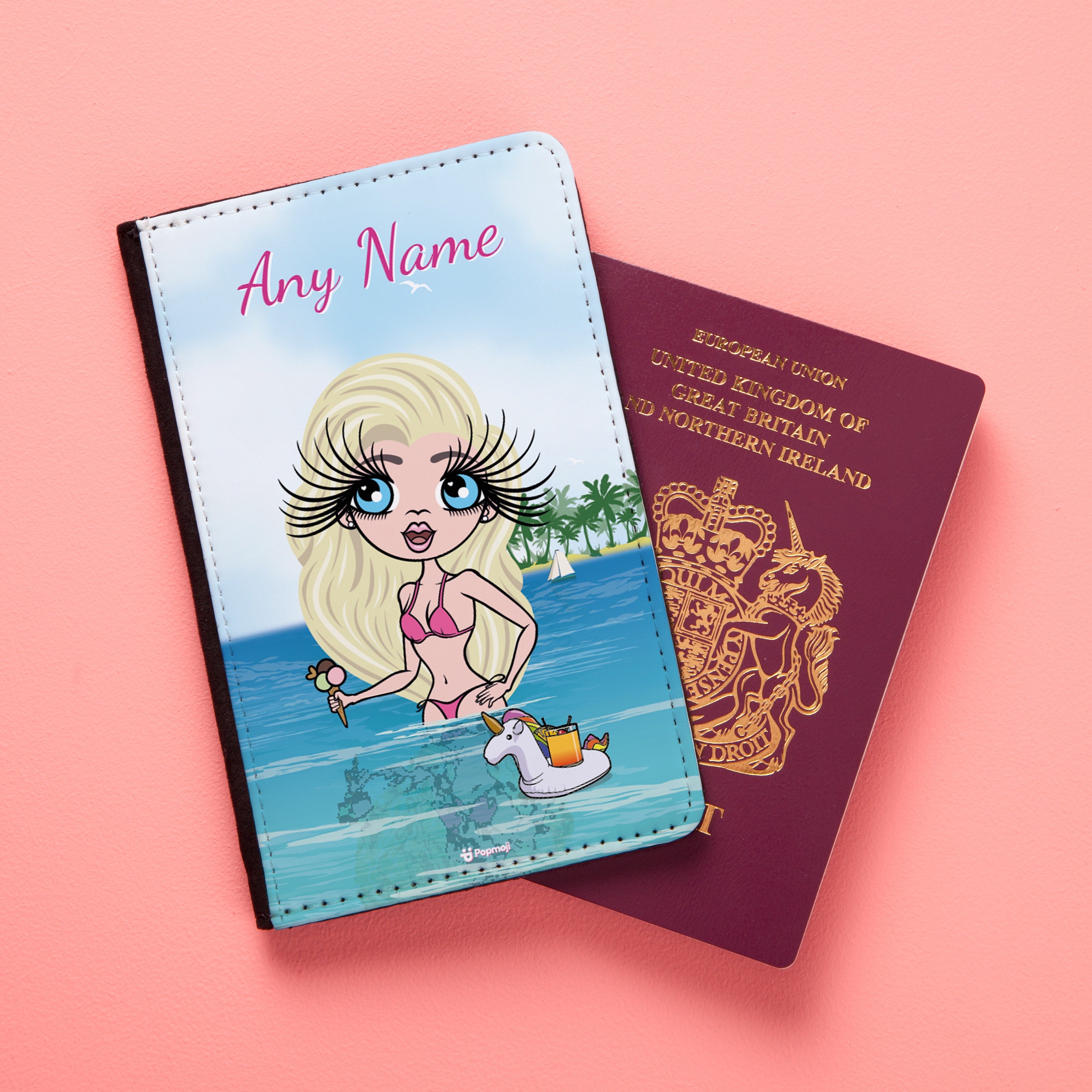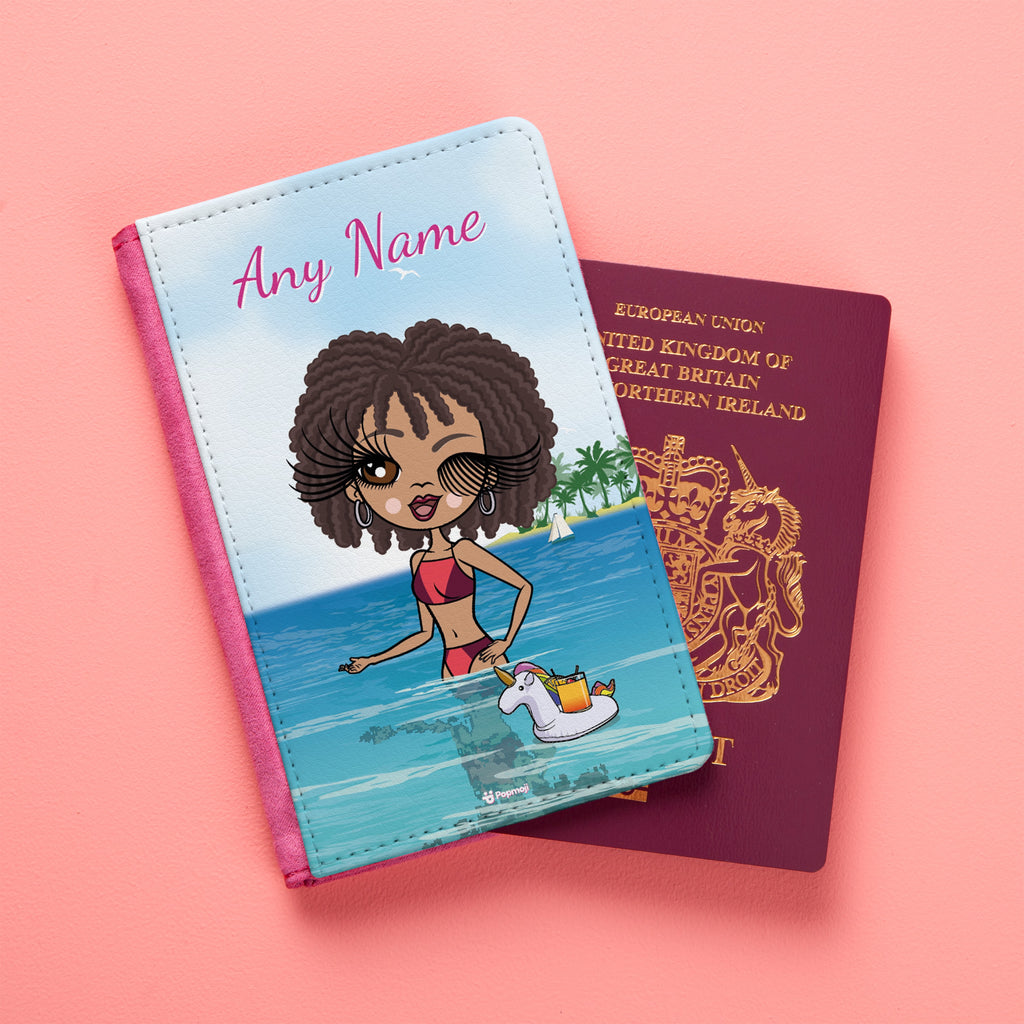 Travel in style with this stunning new ClaireaBella Seaside Cocktails passport cover.  This stylish passport cover features your created ClaireaBella Character and name on a sea beach scene with cocktails.