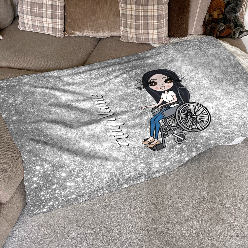 ClaireaBella Silver Glitter Effect Wheelchair Fleece Blanket
