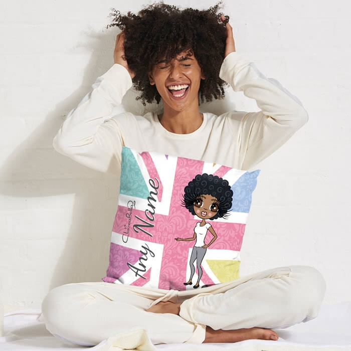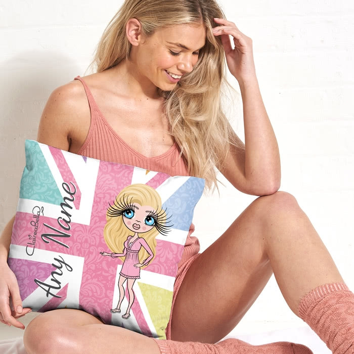 This gorgeous ClaireaBella Union Jack square cushion adds girly patriotic style to any room. All you need to do is create your very own Claireabella Character to represent you at your best to feature on this pretty patriotic colourful union jack design background.