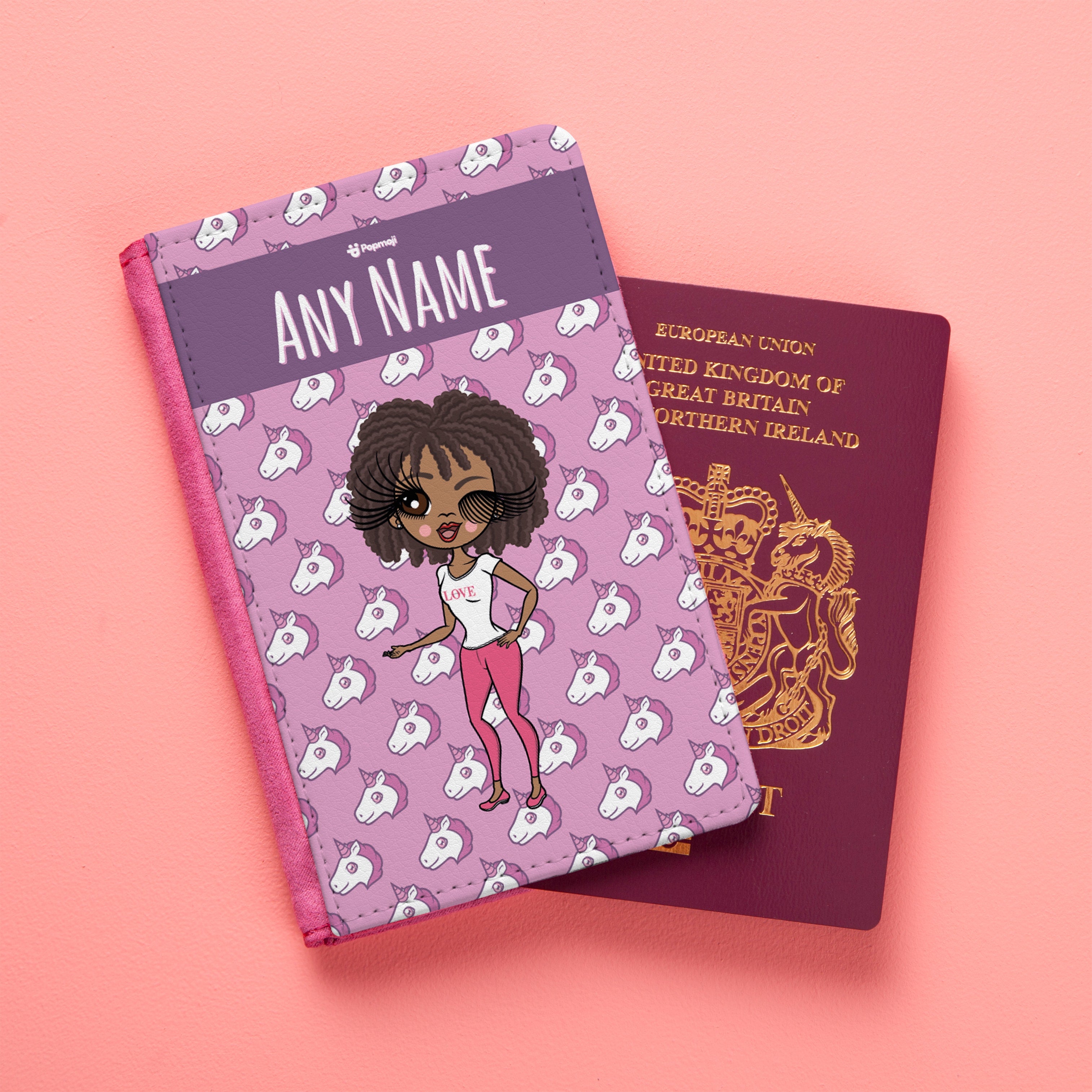 Travel in style with this cute new ClaireaBella Unicorn Emoji passport cover. This stylish passport cover features your created ClaireaBella Character and name on a cute unicorn emoji background.
