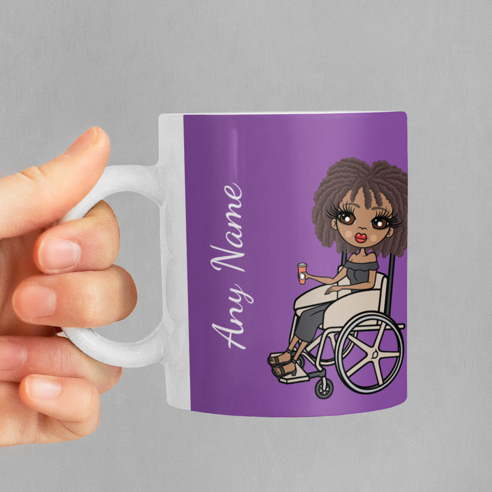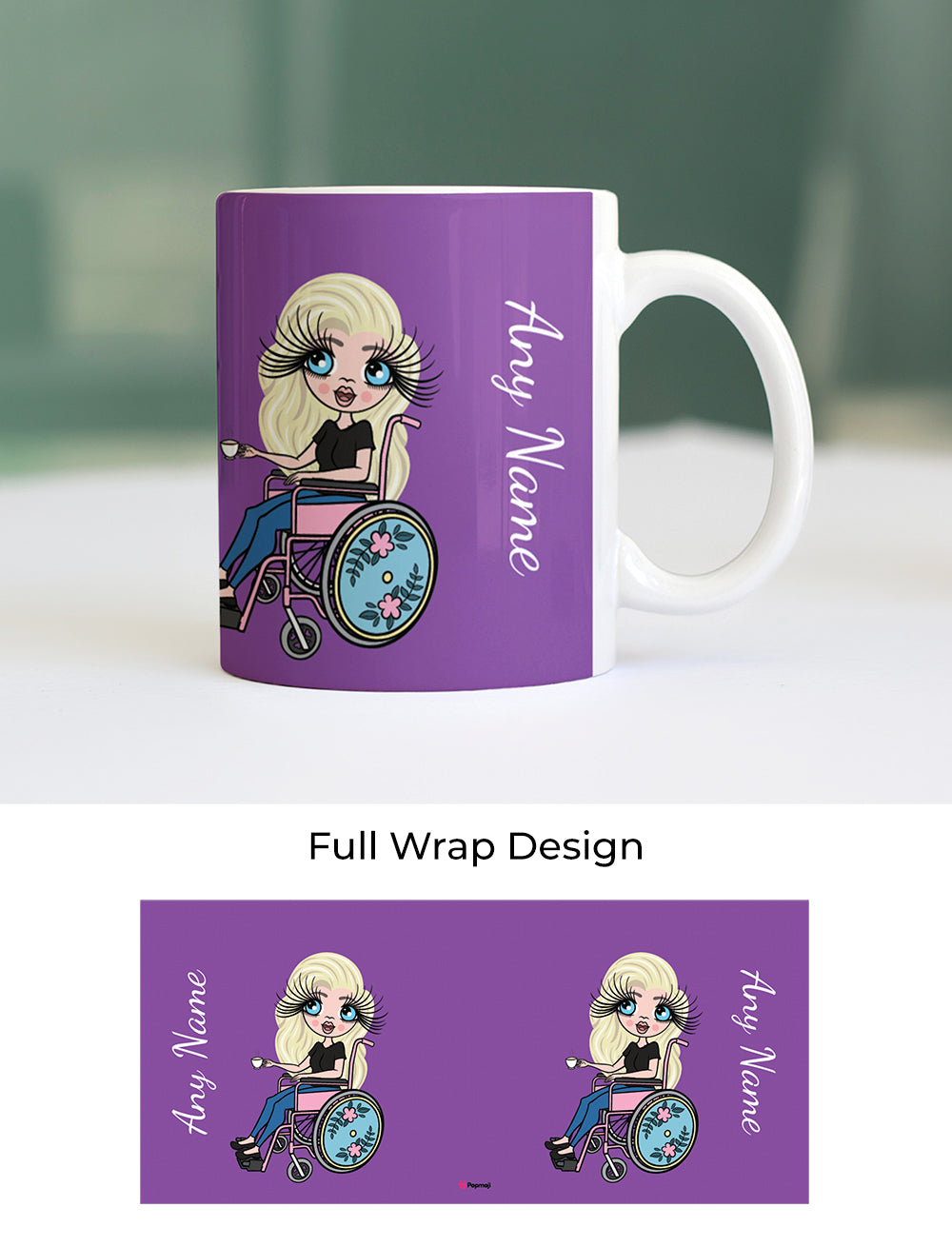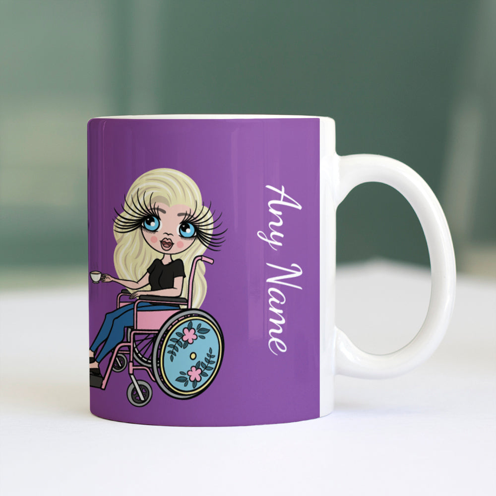 Time to sit down with a cuppa in true unique style with the personalised ClaireaBella Mug, featuring your created character in a bold purple design, along with your custom design wheelchair.