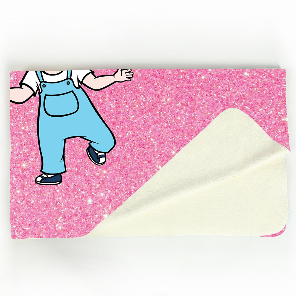 Keep your little munchkin cosy and warm with the super cute fully personalised Early Years Pink Glitter Fleece Blanket.