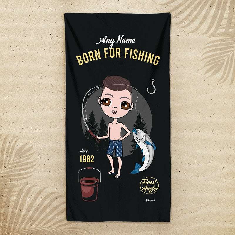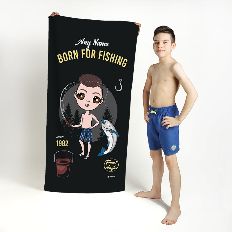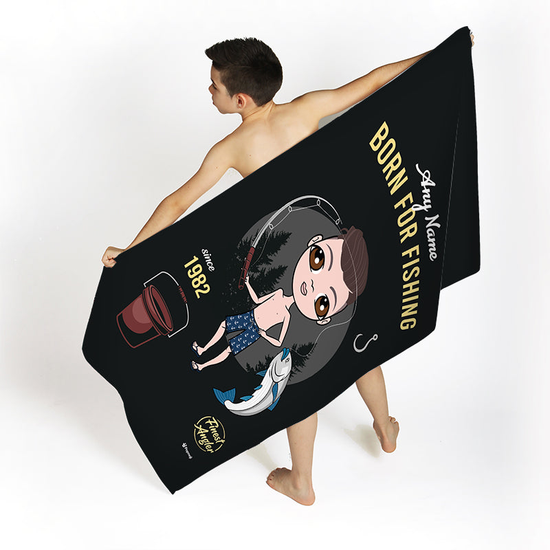 Head to the beach or pool in true sporting Jnr boys style! - with your very own personalised Jnr Boys Beach Towel, featuring YOU at the centre of this fab born fishing themed design.