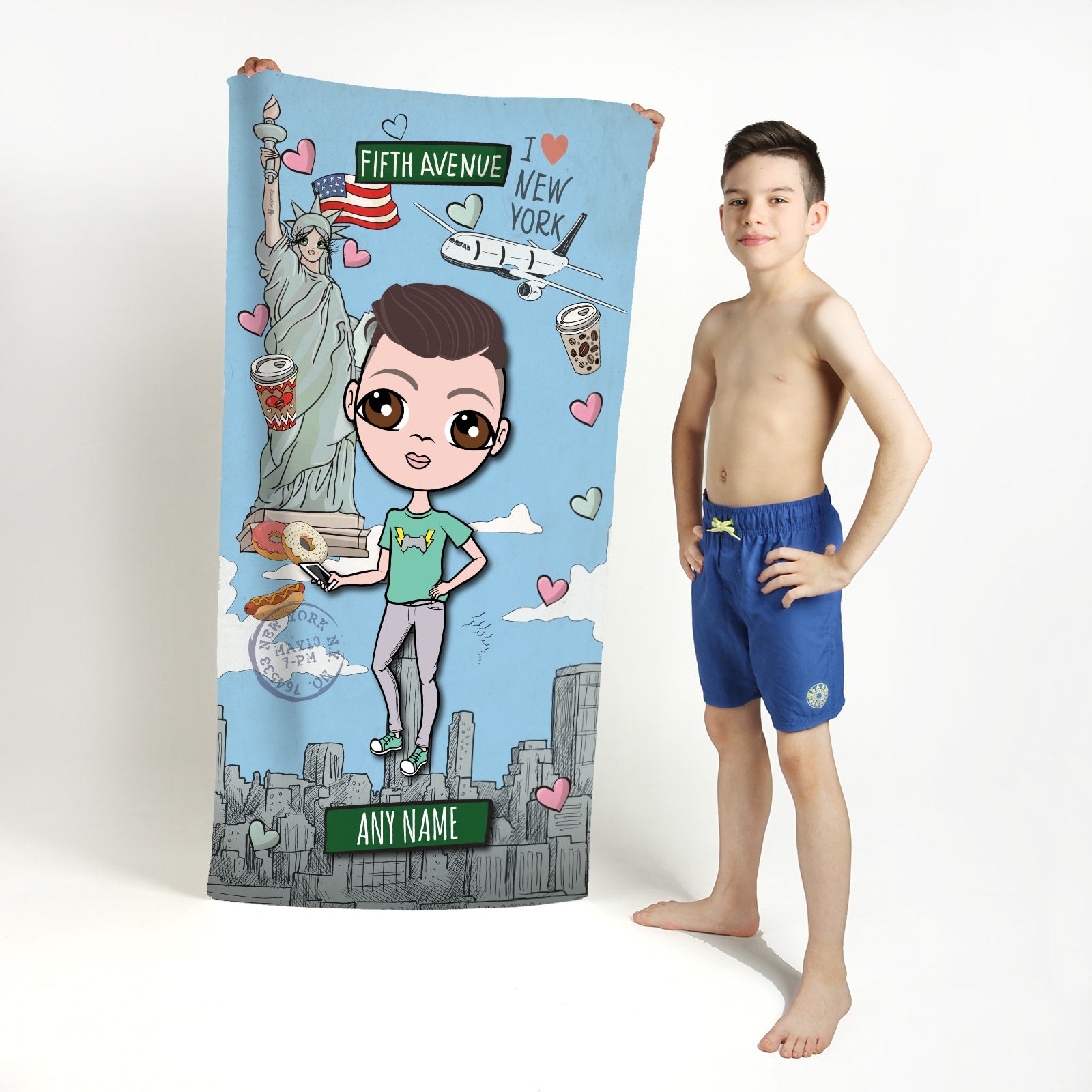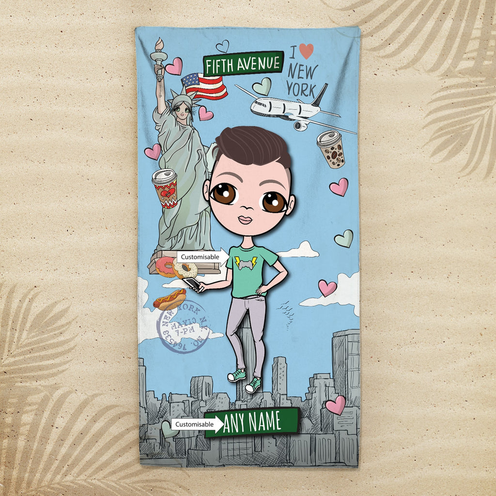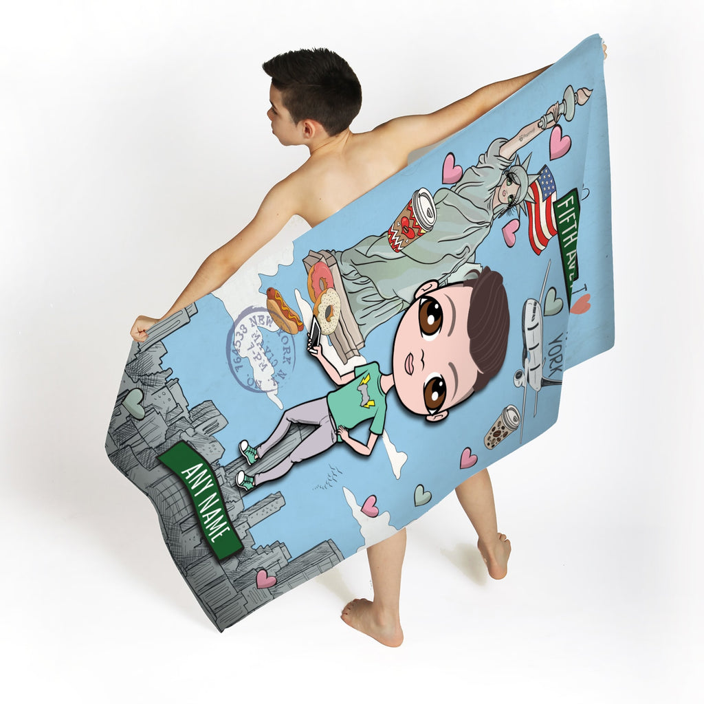Head to the beach or pool in true Jnr boys style! - with your very own personalised Jnr Boys Beach Towel, featuring YOU at the centre of this funky and fun design.