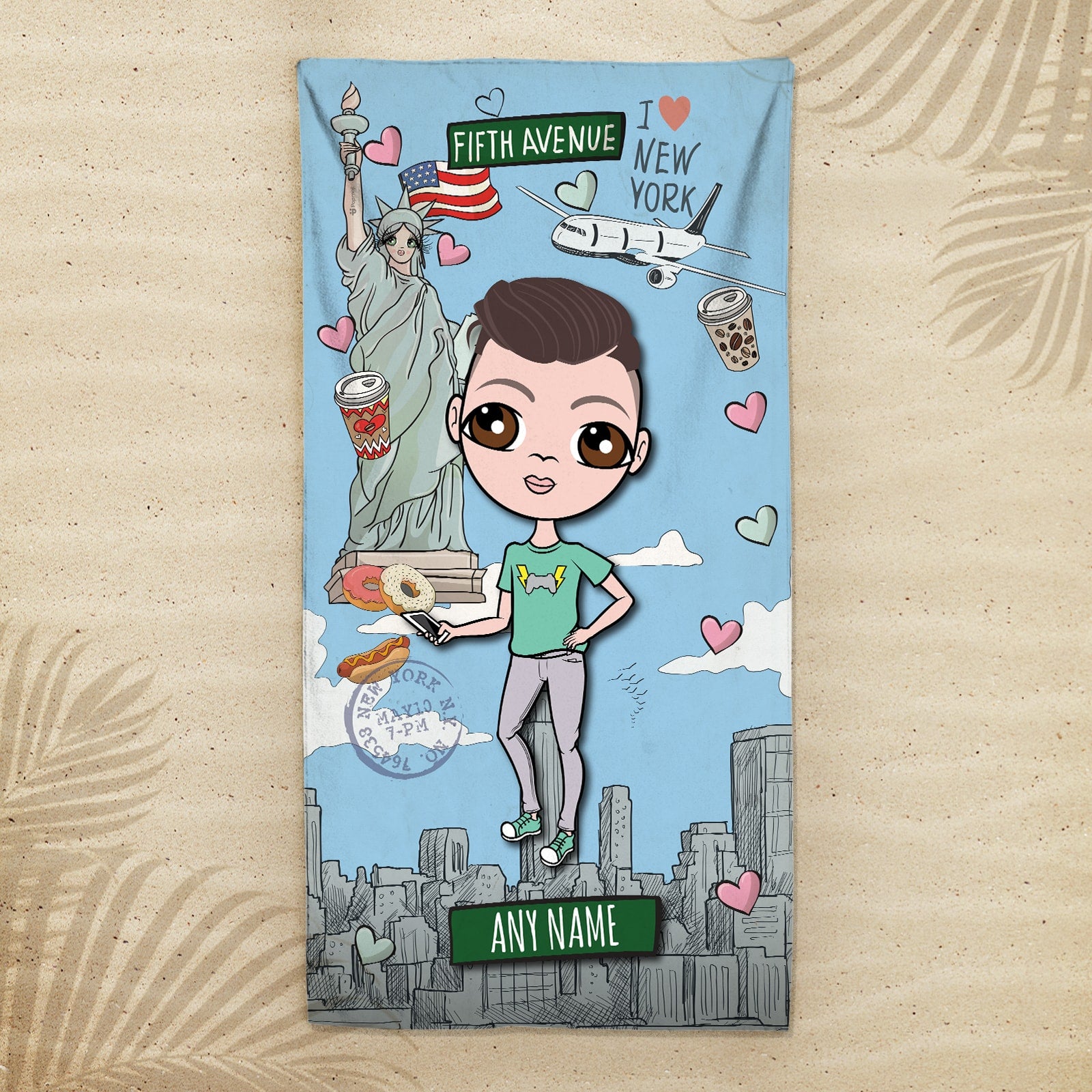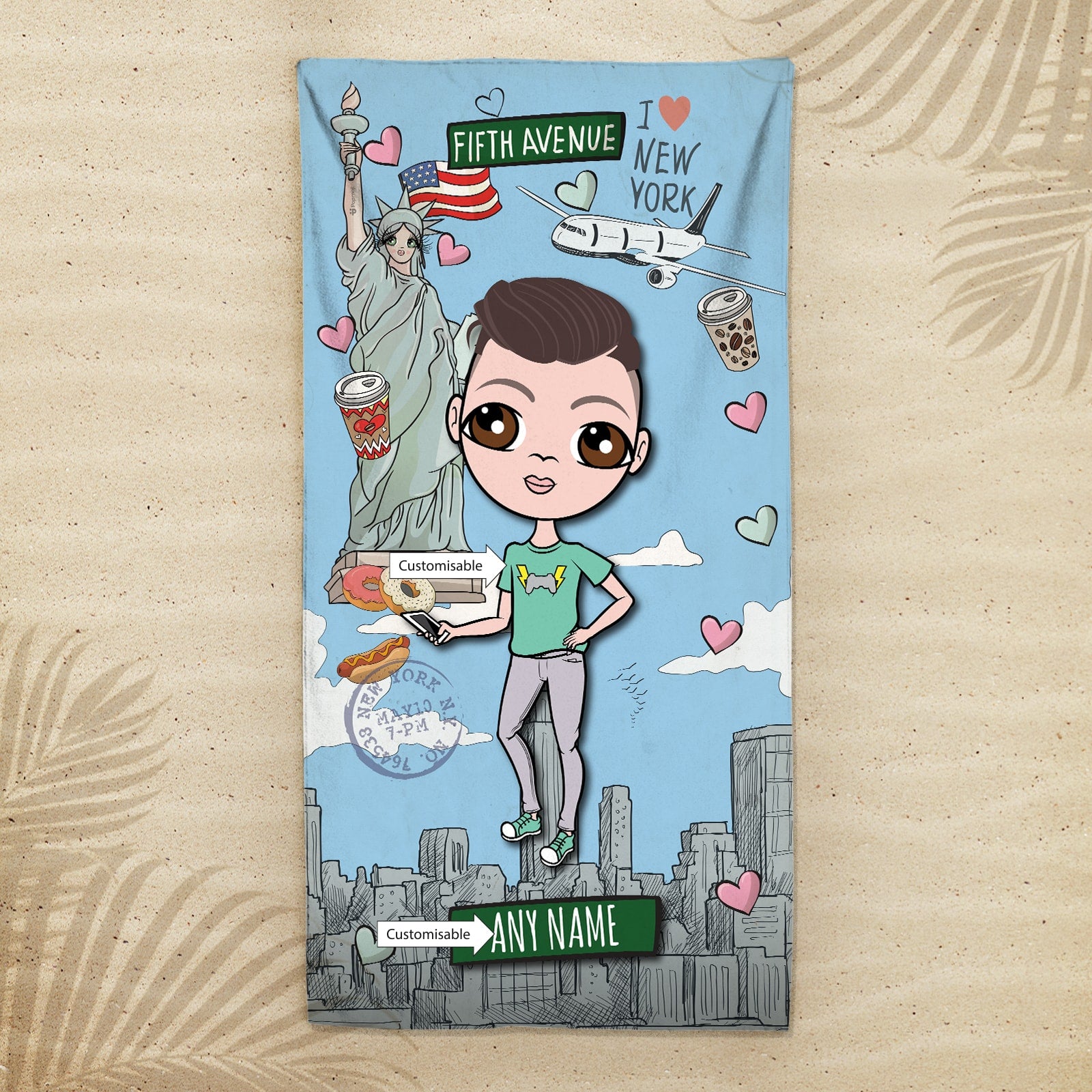 • Medium measures 70cm x 140cm • Large measures 80cm x 160cm • Rectangle beach towel • Made from 70% cotton and 30% microfibre • Design features on the mircfibre top • White towel back • Add a name up to 12 characters • Wash at 30 degrees • Towel will fluff up after the first wash