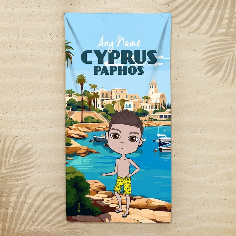 Jnr Boys Personalised Cyprus Paphos Beach Towel
