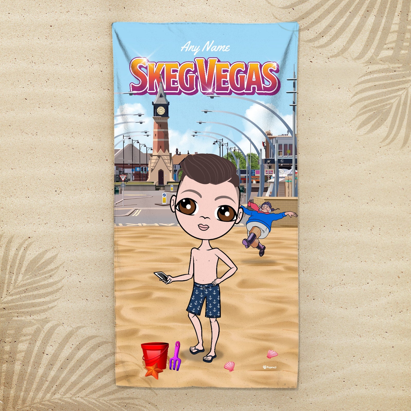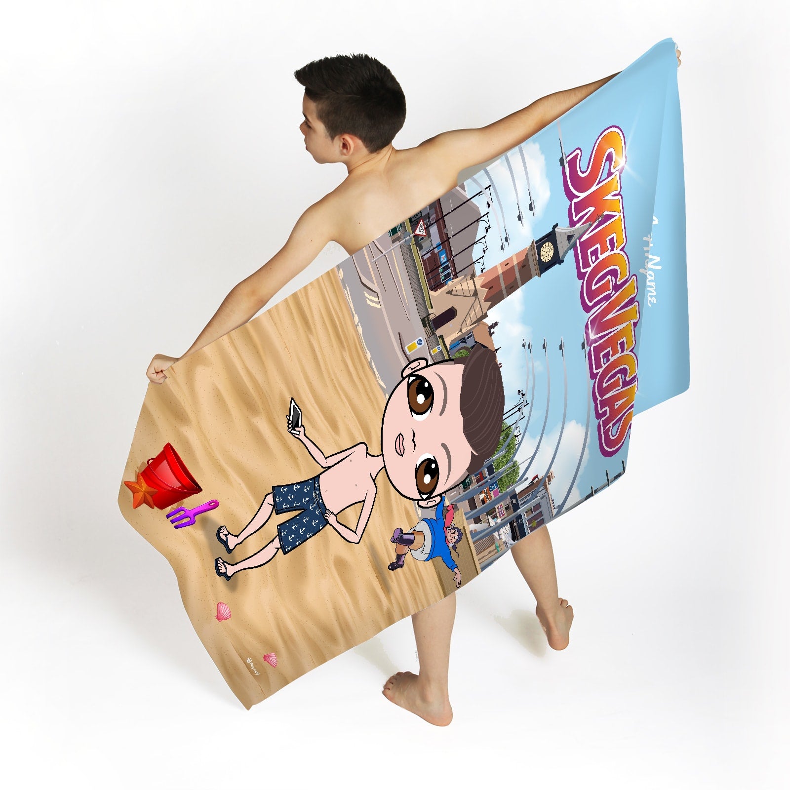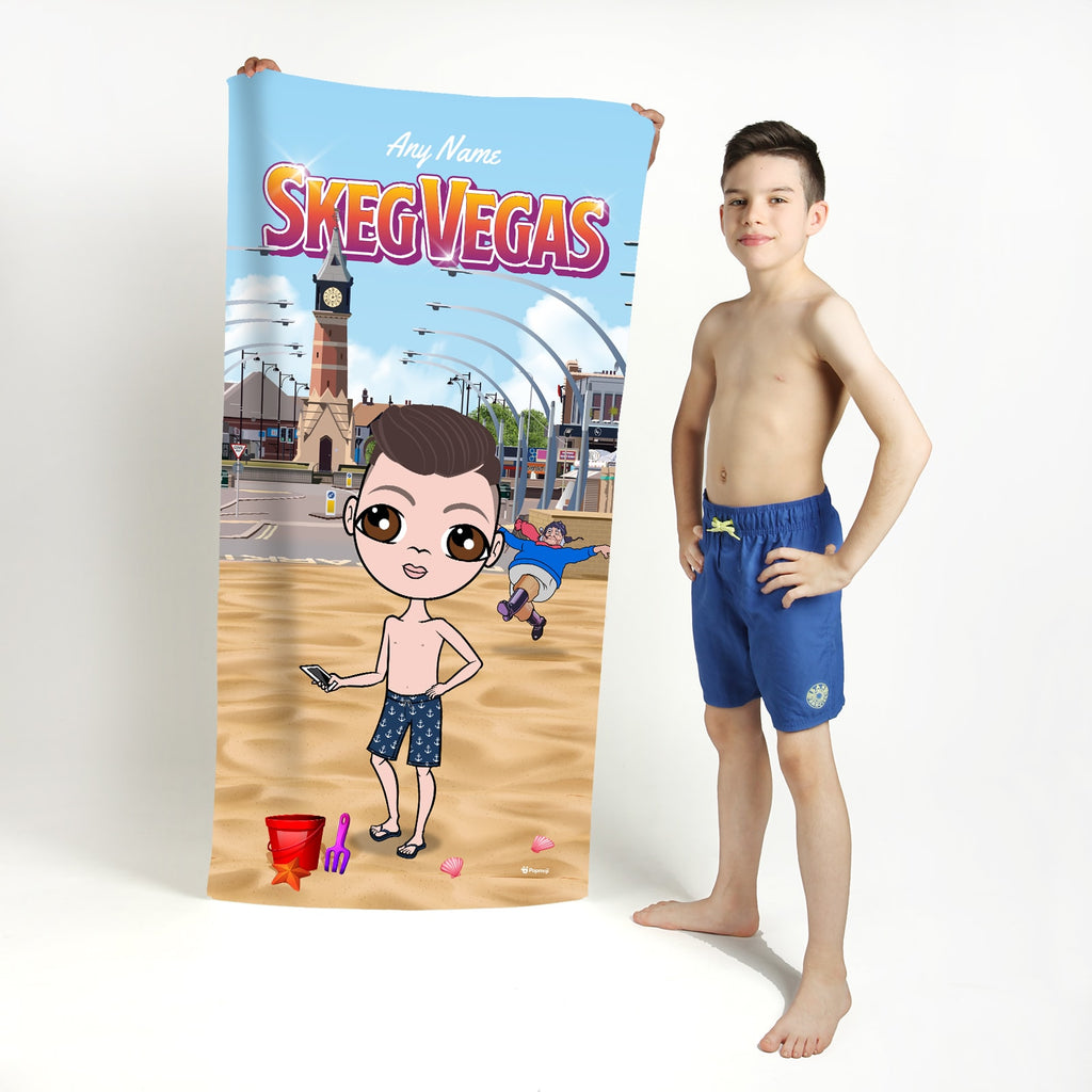 Head to the beach or pool in true Jnr boys style! - with your very own personalised Jnr Boys Beach Towel, featuring YOU at the centre of this cool design.