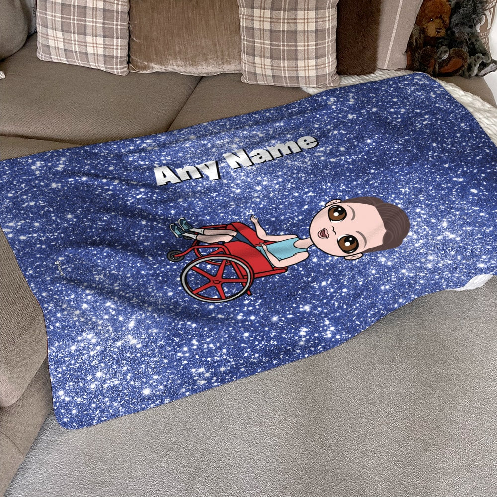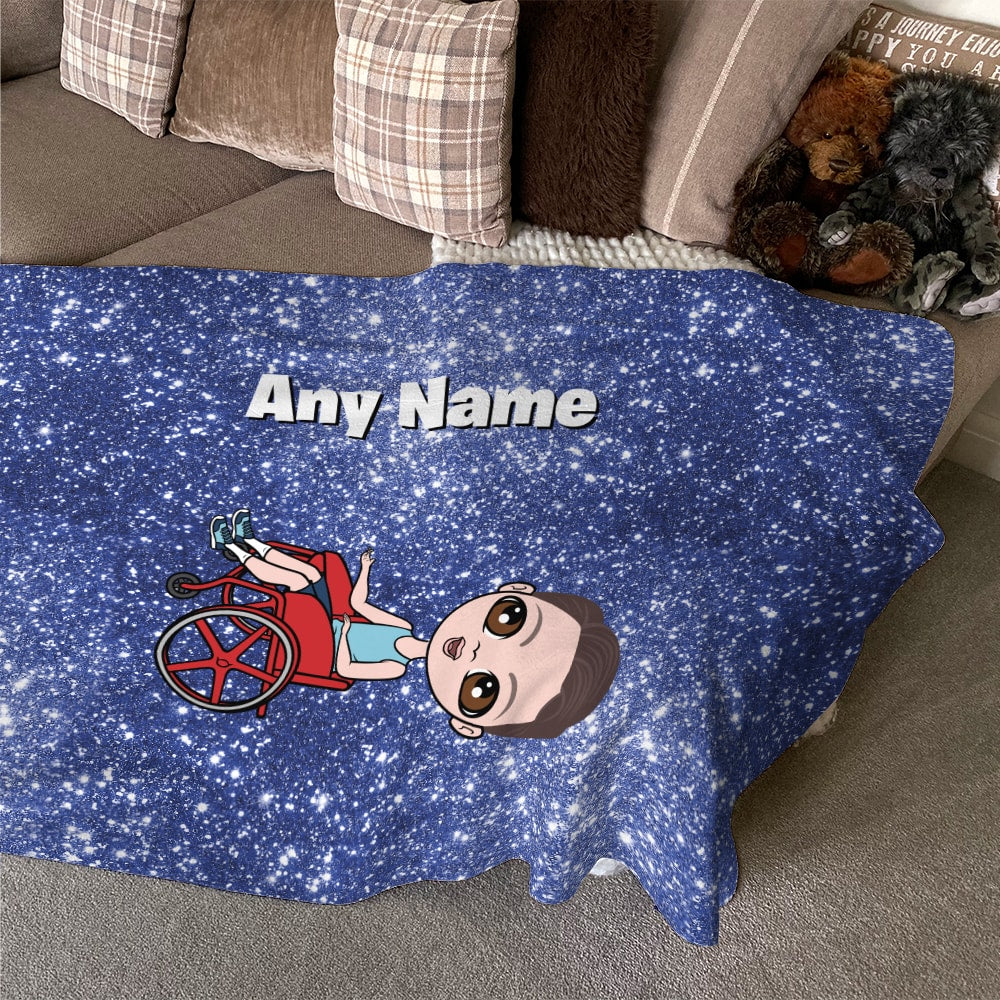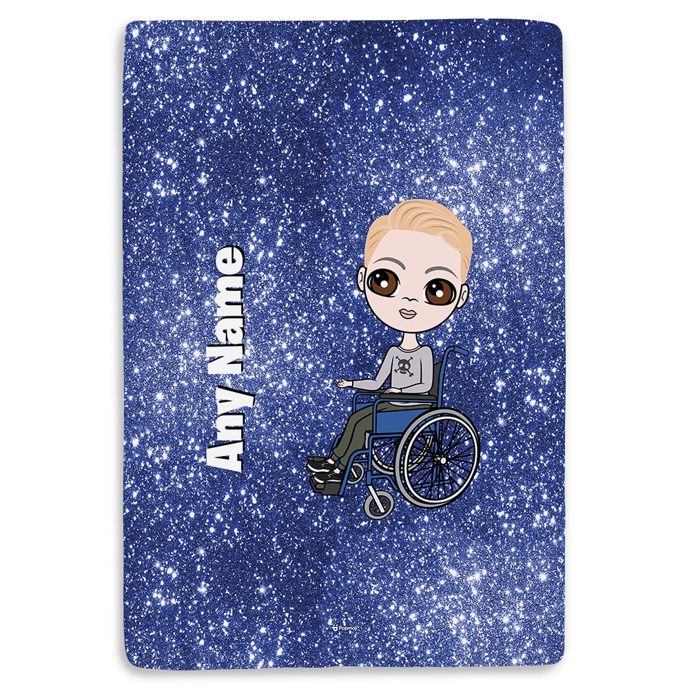 Jnr Boys Wheelchair Portrait Blue Glitter Effect Fleece Blanket
