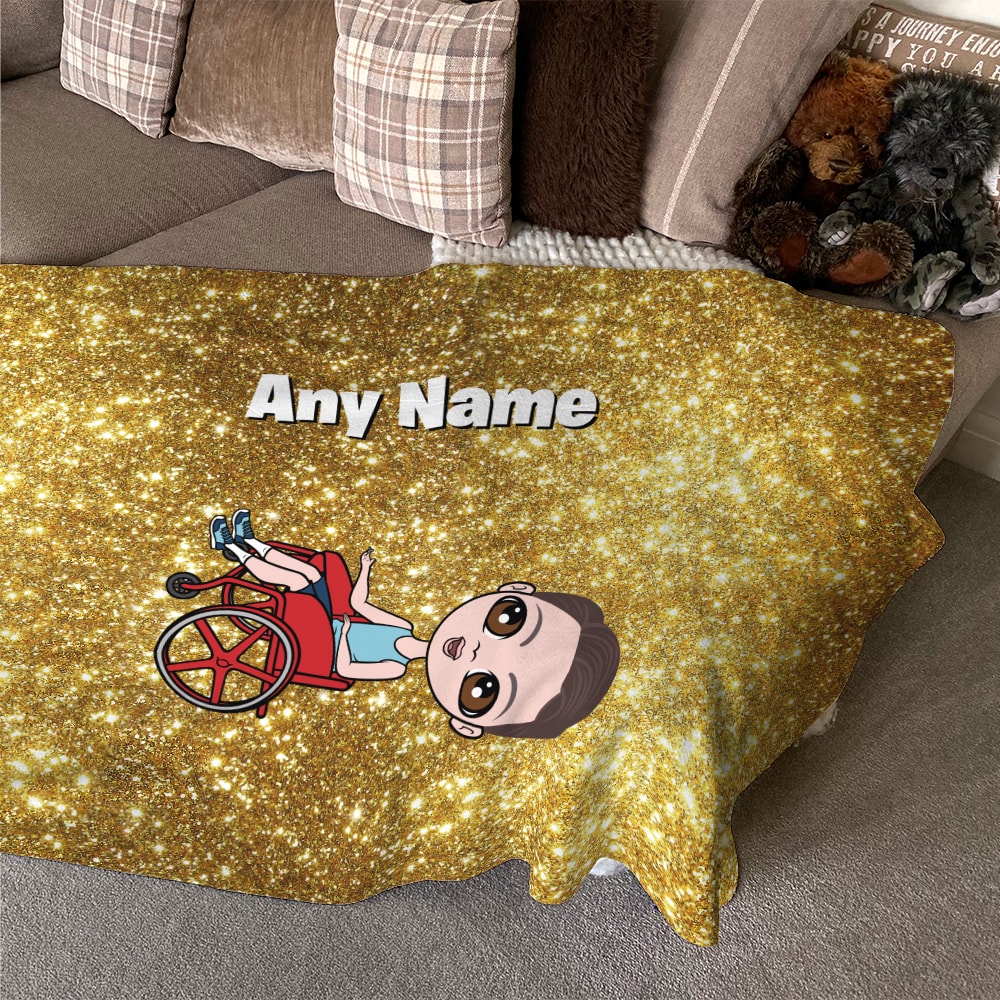 Jnr Boys Wheelchair Portrait Gold Glitter Effect Fleece Blanket