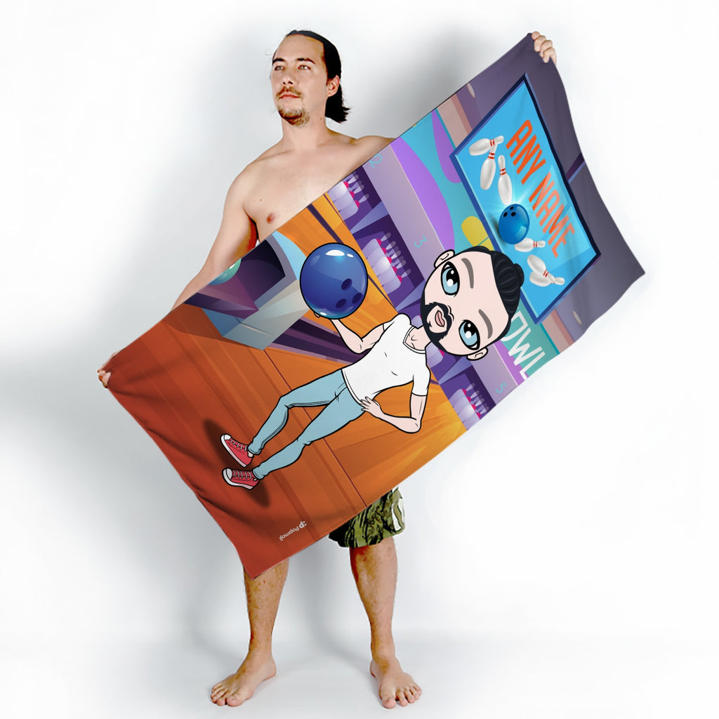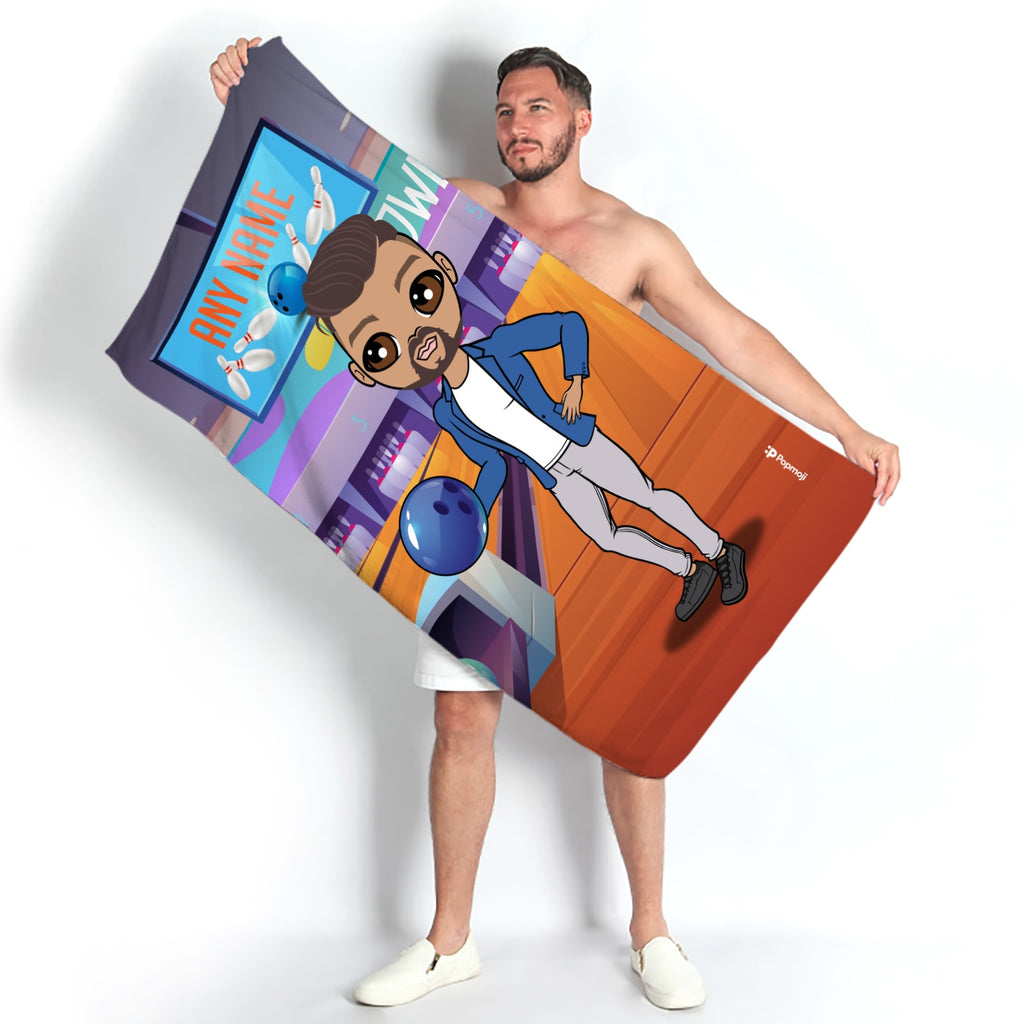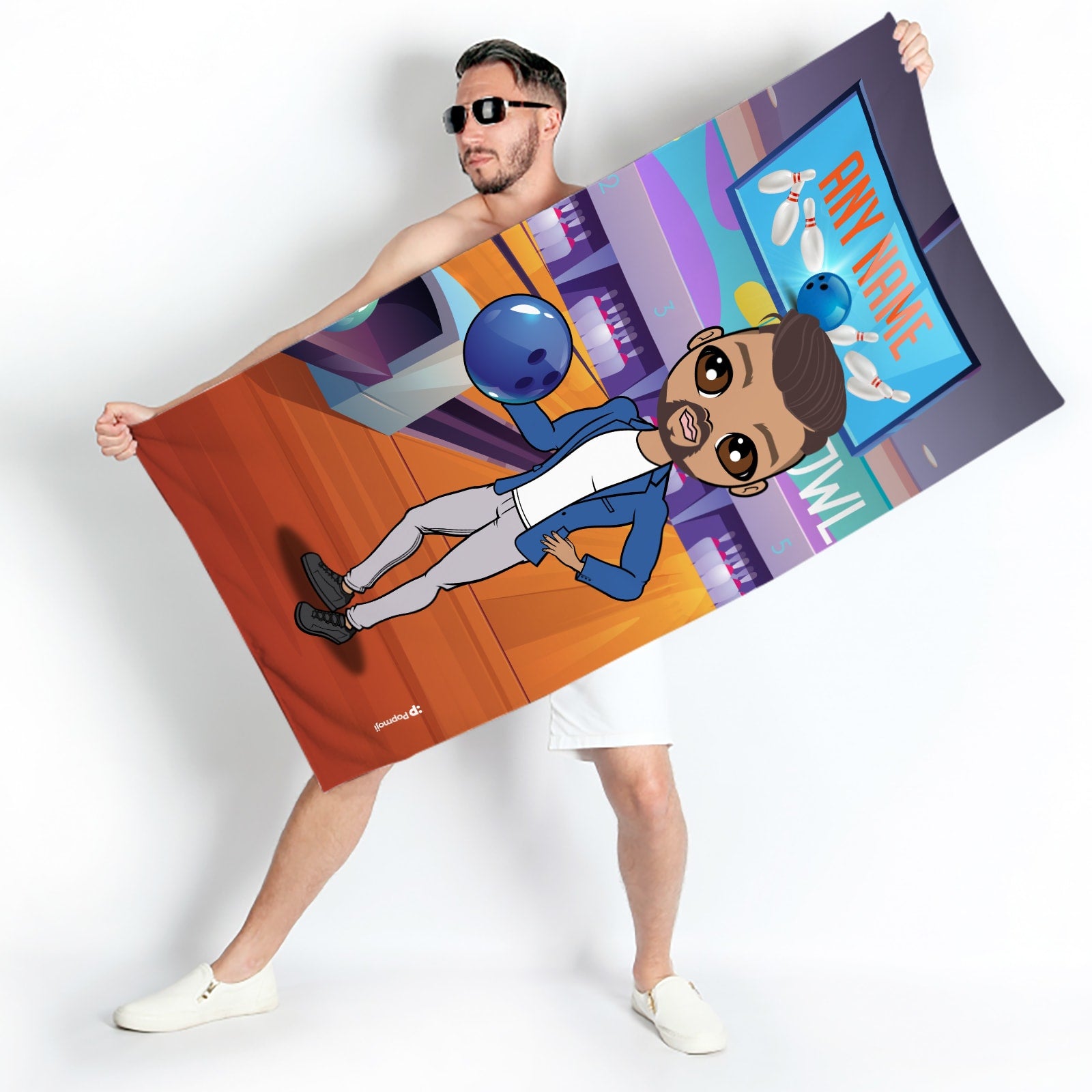 Head to the beach or hang pool side with a sporting personal attitude! With the new MrCB Beach Towel, featuring YOU in the centre of this fun bowling master design.