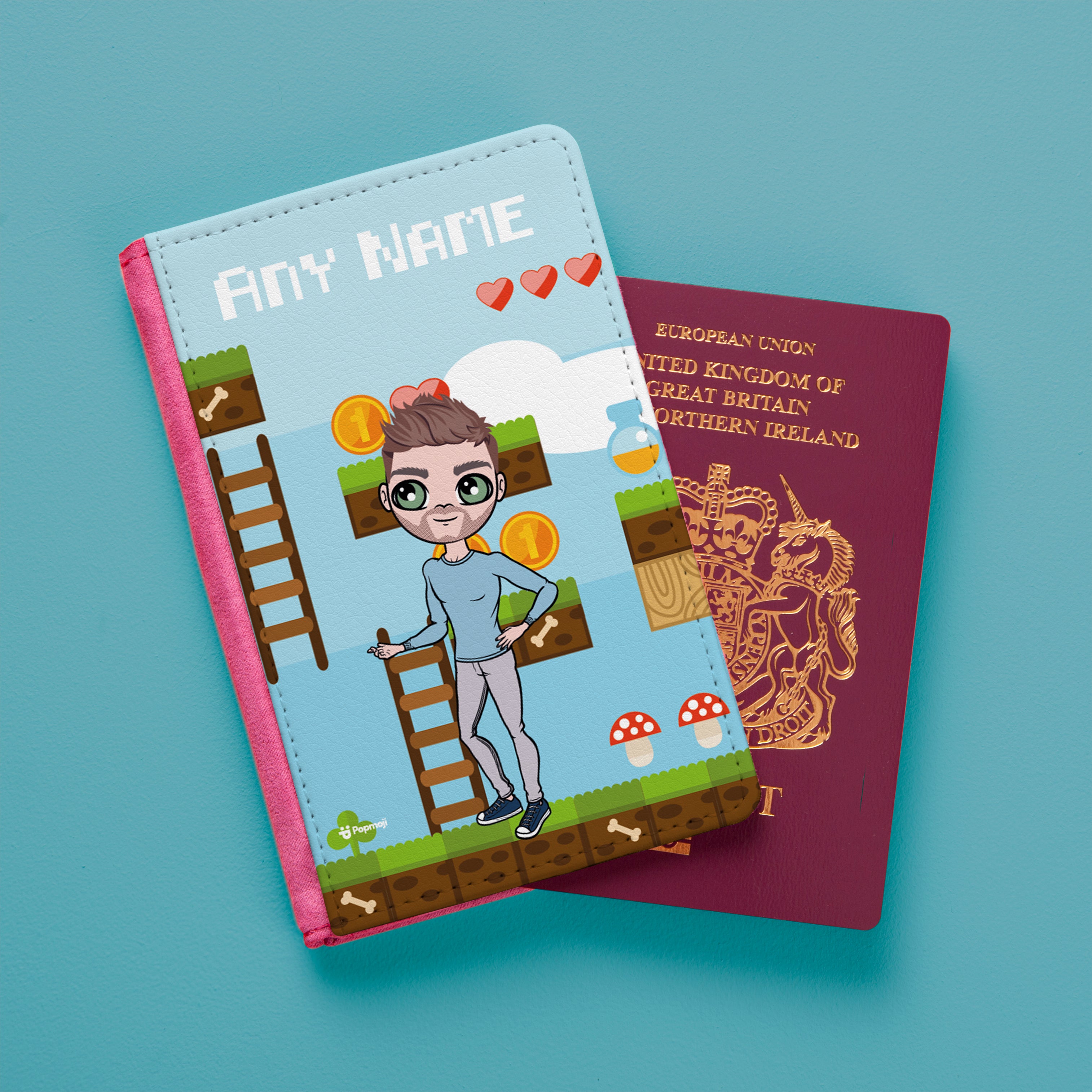 Are you the gaming type?... add your own mod to your personalised passport cover with MrCB. The passport cover features a fun, bold computer game themed background. Add your personalised character along with your name to feature on your passport cover.
