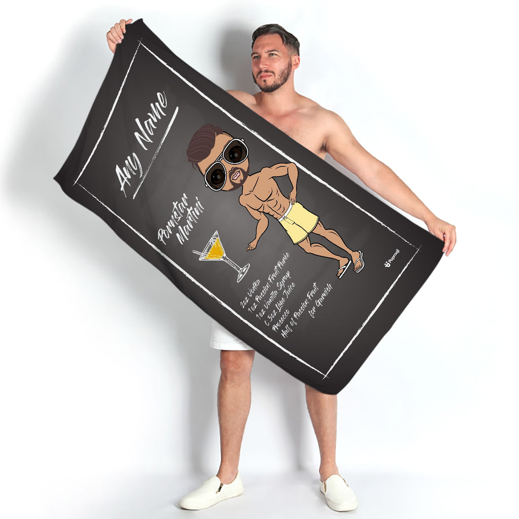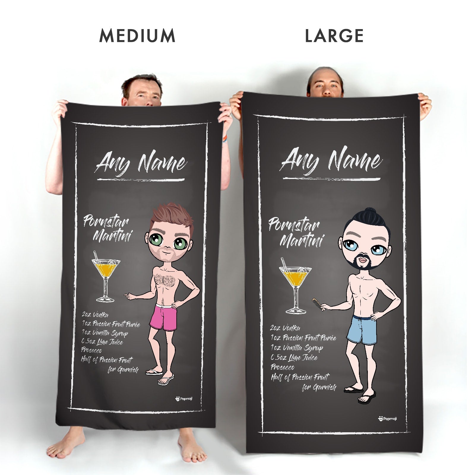• Tasty pornstar martini recipe design • Create your Full Length Character • New Customisation Options • Choose from 2 sizes • Rectangular beach towel • Add a Name • Medium Towels – Width 70cm x Length 140cm • Large Towels – Width 80cm x Length 160cm