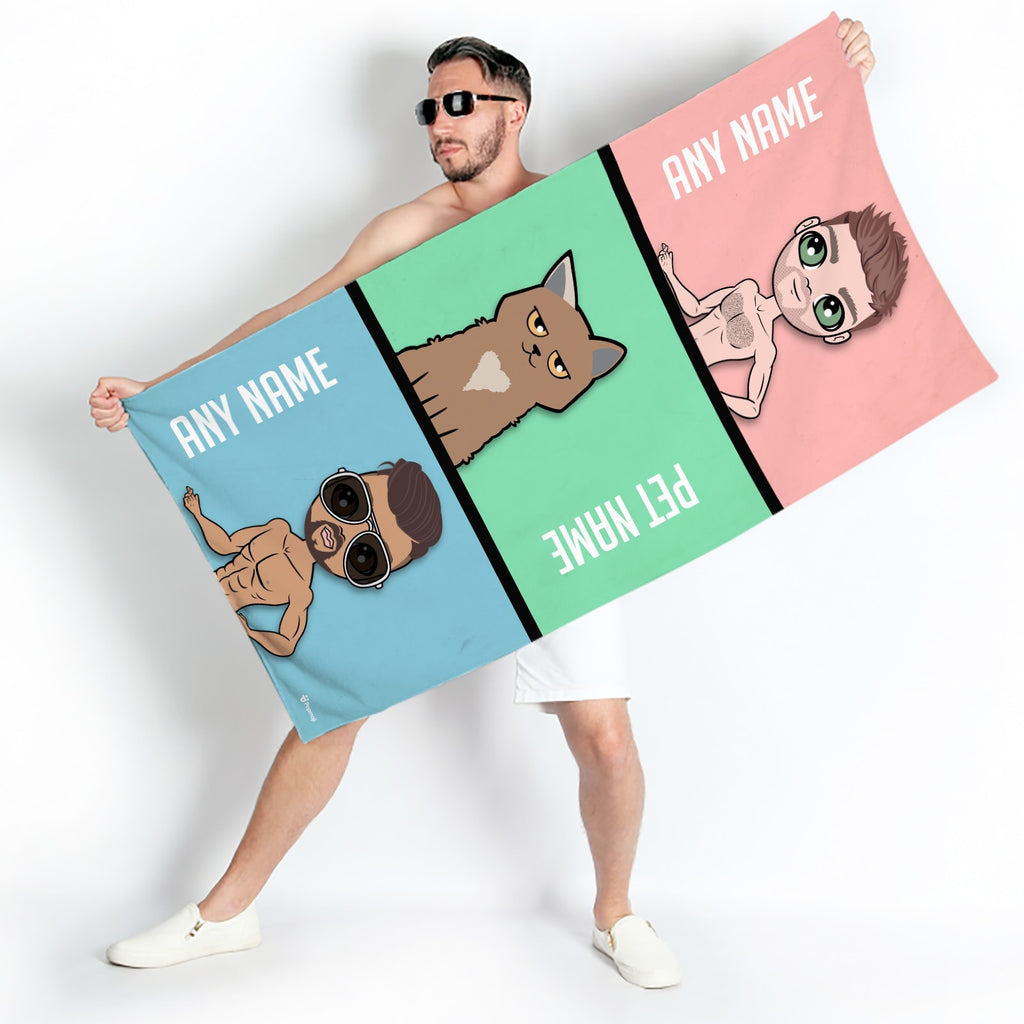 It's time to take your A game to a whole other level with our big and bold fully personalised Multi Character Beach Towel - personalised with your created characters, whether this is you and your partner, friend or family member along side your created cute cuddly kitty! Each character is fully personalised and created by you using our fun and easy to use character builder.