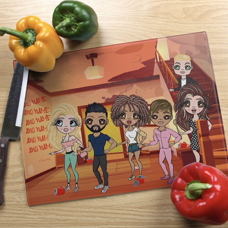 Multi Character Glass Chopping Board - Student House 6 Adults